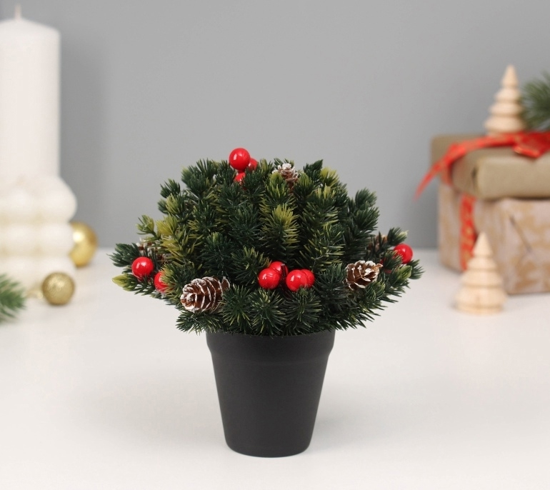 Универсальность – хвойные композиции подходят для украшения дома, офиса, кафе или ресторана. Их можно разместить на столе, полке или подоконнике, создавая уют и праздничную атмосферу.