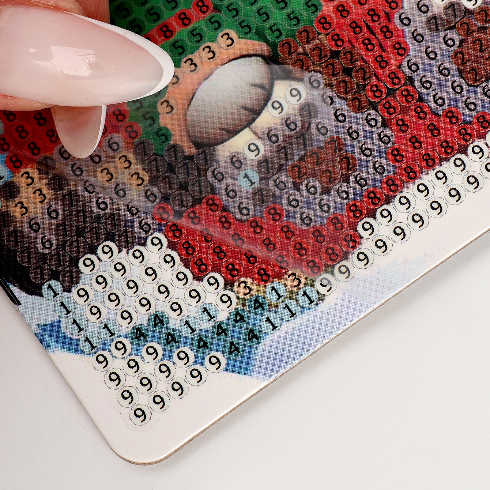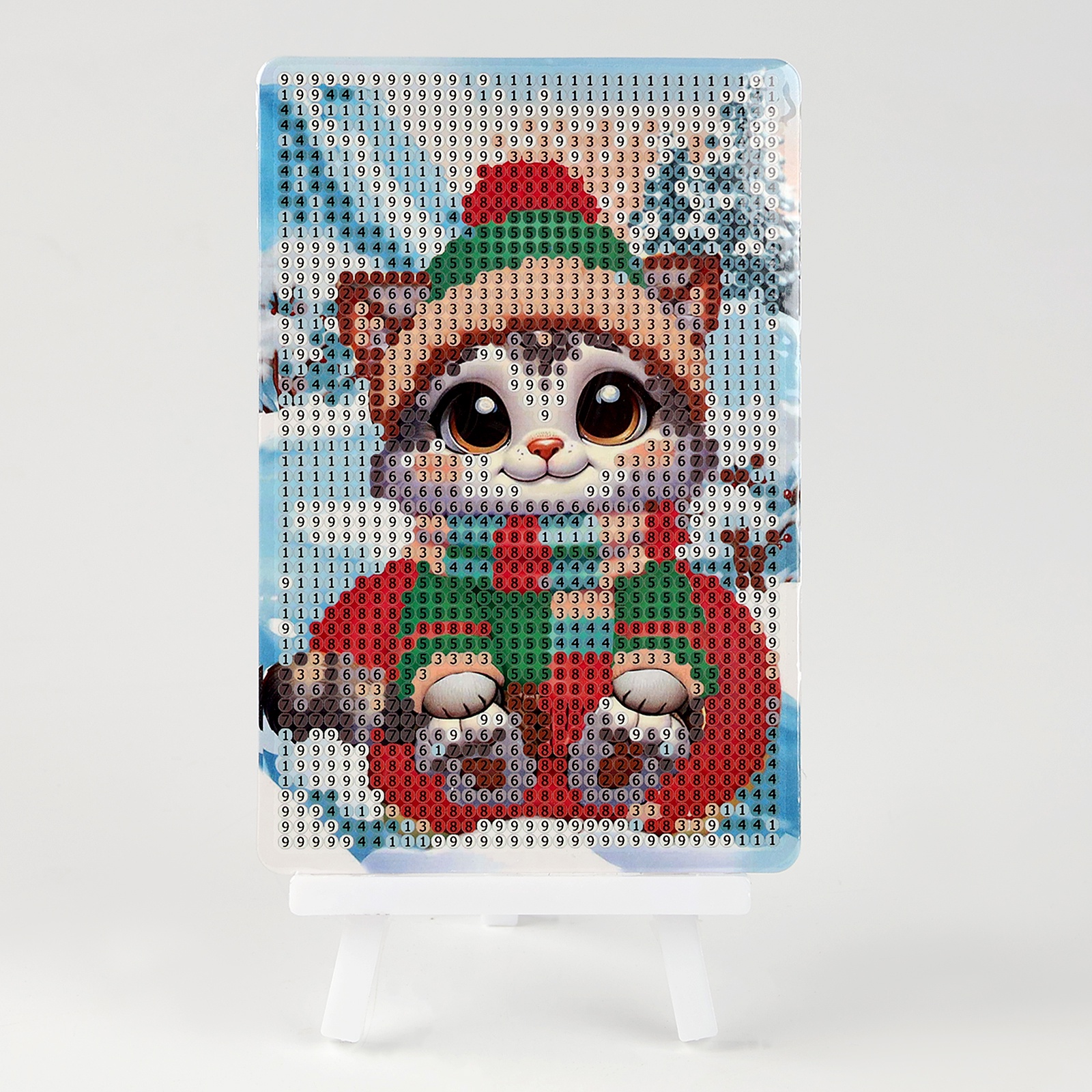 Алмазная мозаика — это увлекательный вид творчества, который понравится любому малышу! Ребёнку предстоит разложить кристаллики карандашом по пронумерованной схеме, заполнив всё полотно. Основа с клеевым покрытием будет надёжно удерживать стразы. На ней уже обозначены необходимые оттенки. В наборе есть небольшой мольберт: с ним готовое творение можно расположить на полке или столе без дополнительных креплений. В таком интересном оформлении сверкающая картина будет выглядеть как предмет искусства.