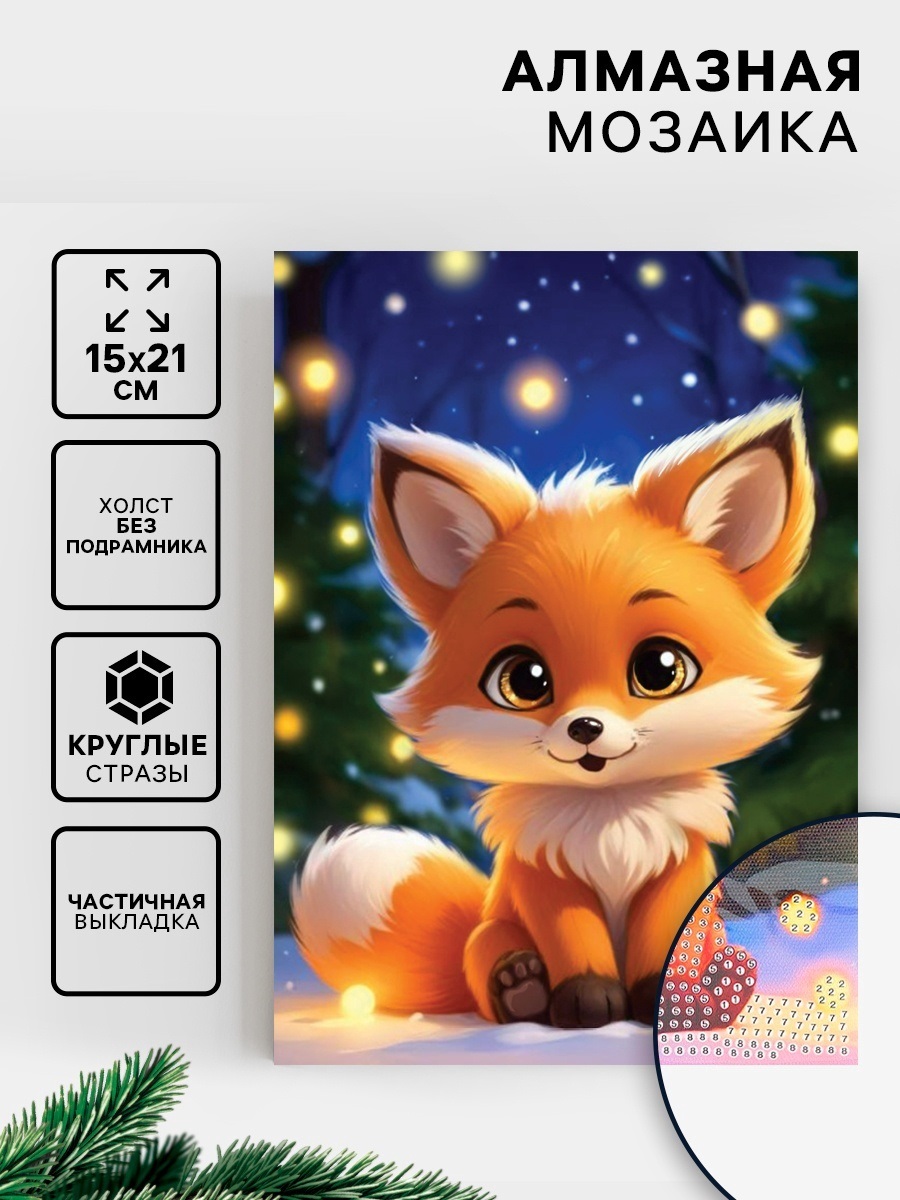 Алмазная мозаика с частичным заполнением «Лисичка» 15×21, холст
