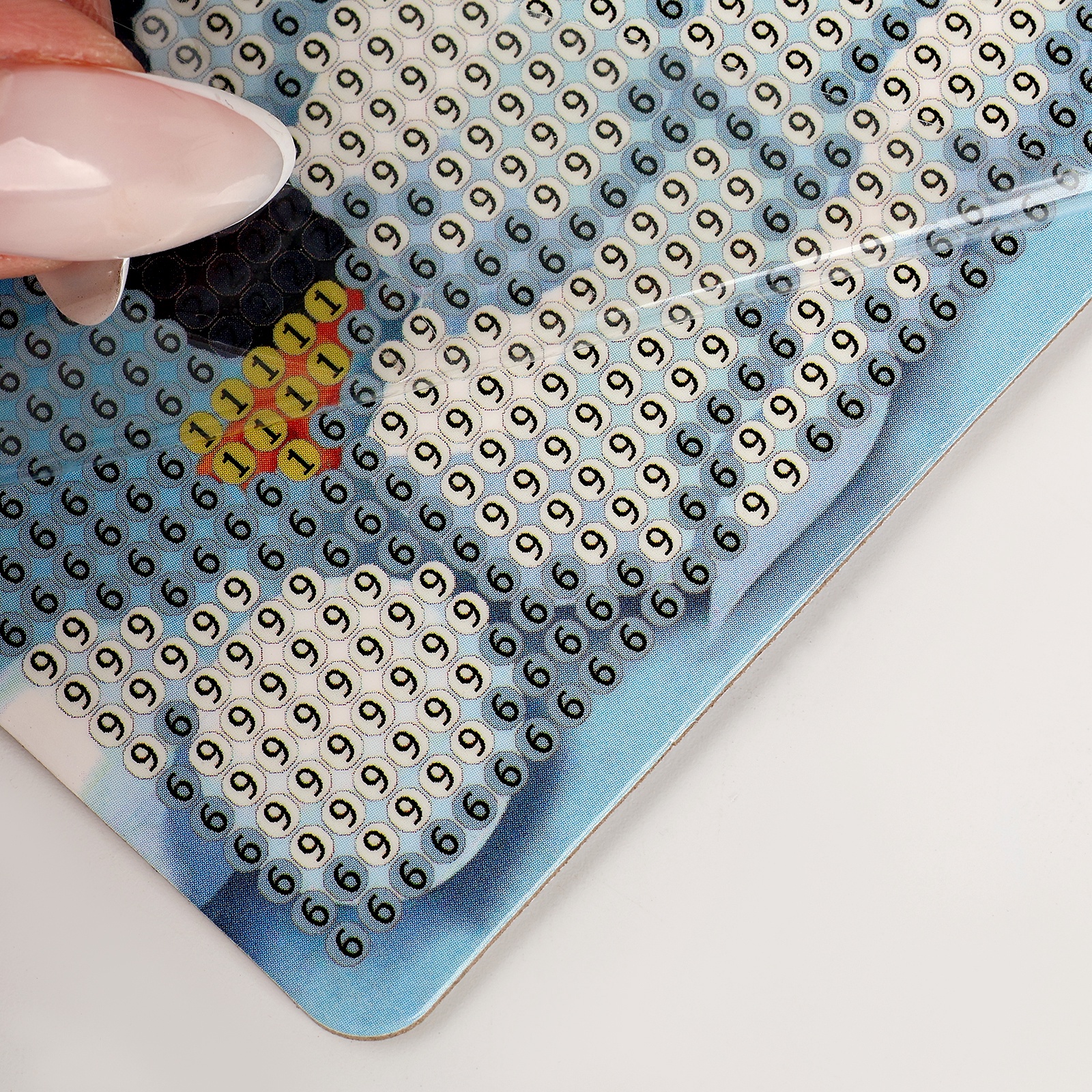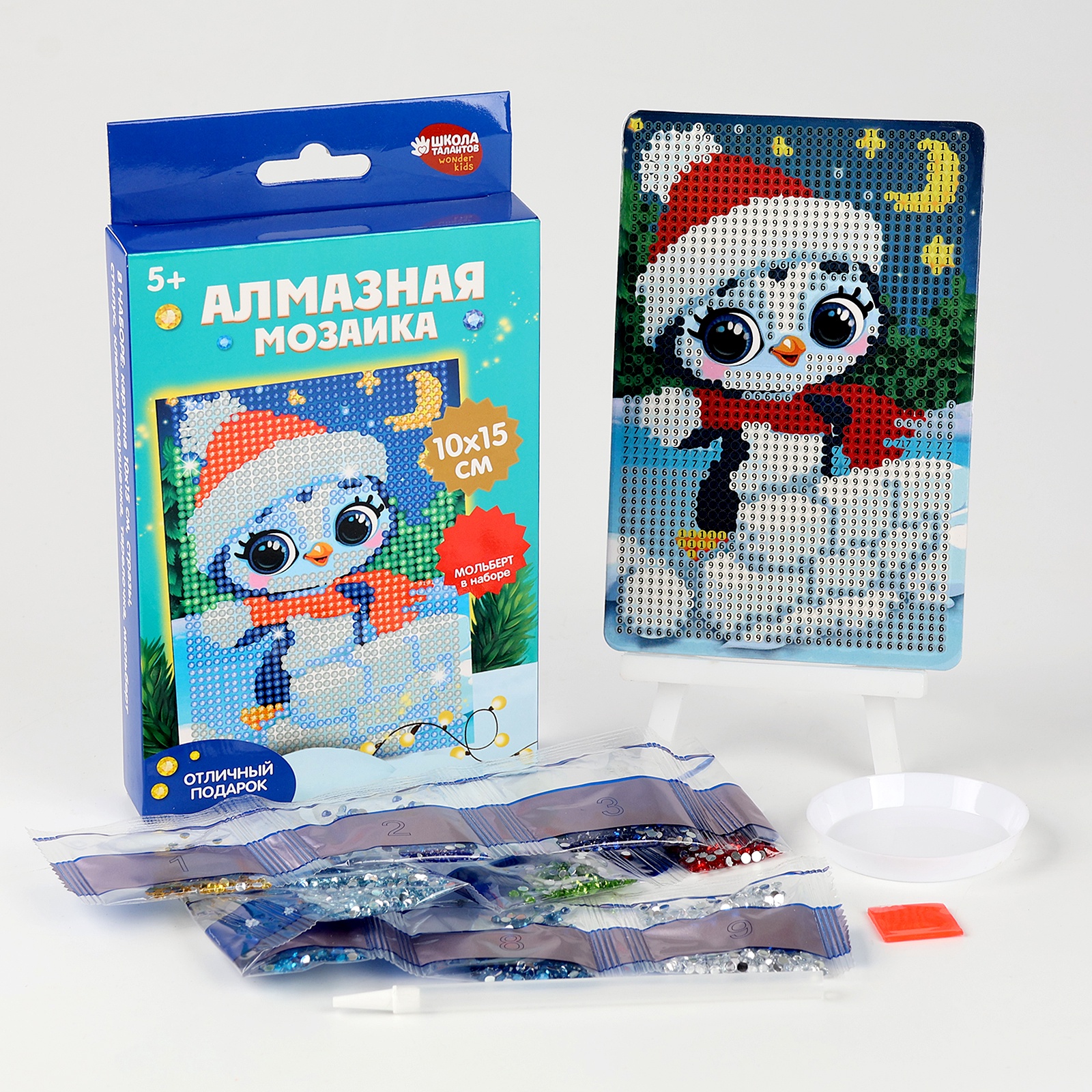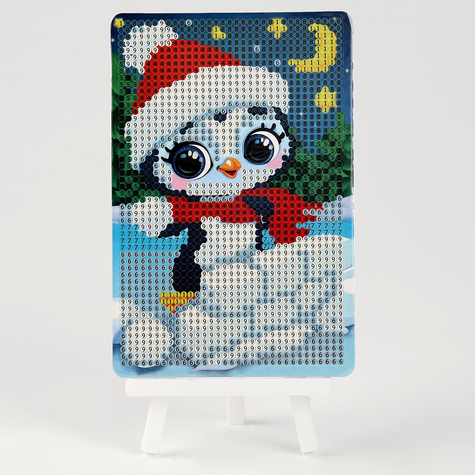 Алмазная мозаика — это увлекательный вид творчества, который понравится любому малышу! Ребёнку предстоит разложить кристаллики карандашом по пронумерованной схеме, заполнив всё полотно. Основа с клеевым покрытием будет надёжно удерживать стразы. На ней уже обозначены необходимые оттенки. В наборе есть небольшой мольберт: с ним готовое творение можно расположить на полке или столе без дополнительных креплений. В таком интересном оформлении сверкающая картина будет выглядеть как предмет искусства.