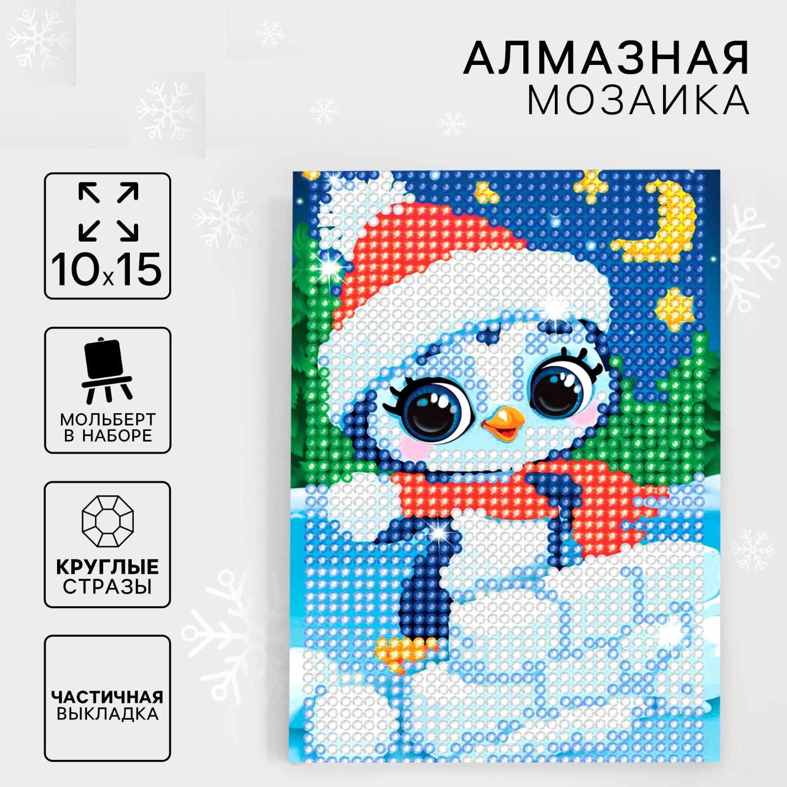 Алмазная мозаика с частичным заполнением «Пингвин» 10×15 см