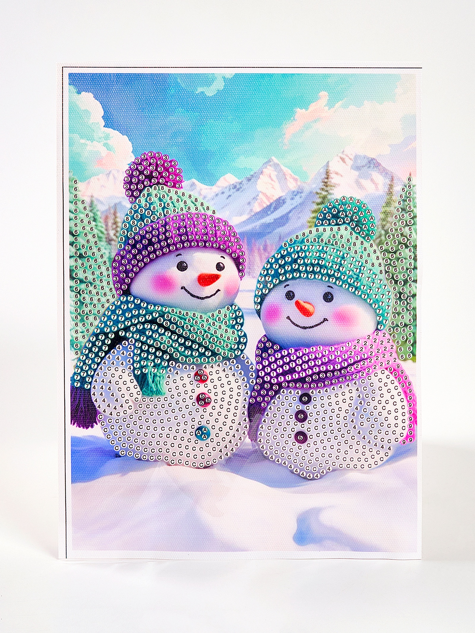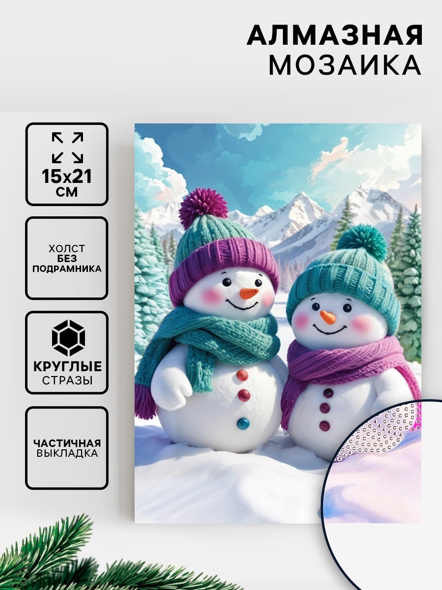 Алмазная мозаика с частичным заполнением «Снеговики» 15×21, холст