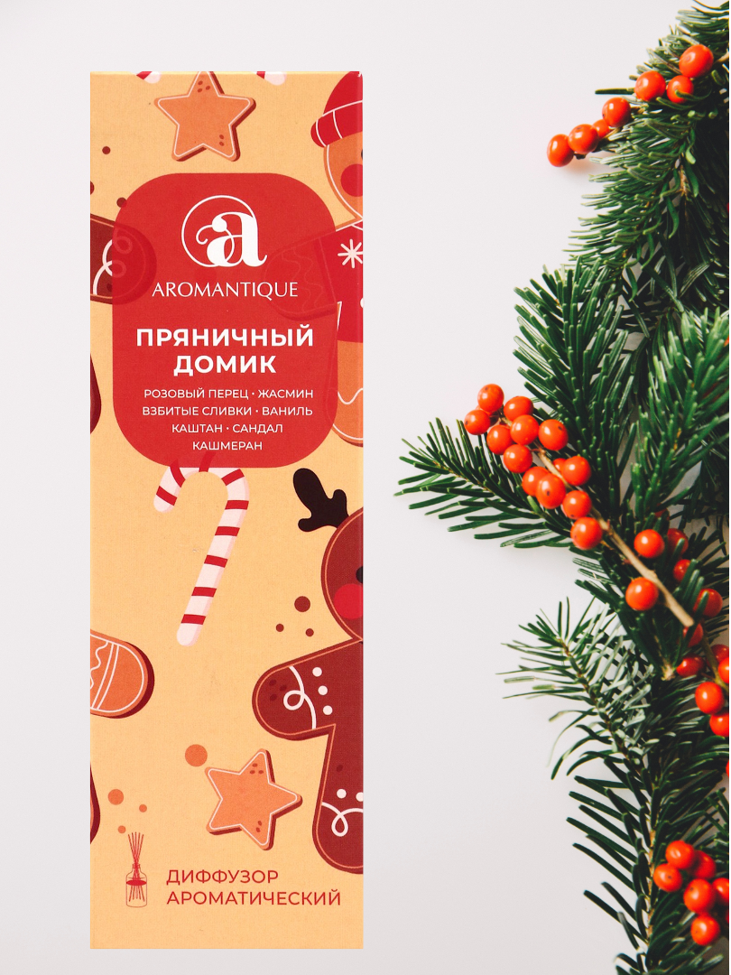 Погрузитесь в чарующую сказку зимних праздников с ароматическим диффузором «Пряничный домик» — тёплым и соблазнительным ароматом, наполненным уютом, нежностью и атмосферой домашнего счастья. Это аромат, который переносит в момент, когда за окном кружится снег, а в доме пахнет сладкой выпечкой, свежим деревом и теплом камина. Верхние ноты розового перца создают лёгкое, искристое вступление — будто первые снежинки, сверкающие в свете гирлянд. Сердце аромата раскрывается элегантным жасмином, соединённым с мягкостью взбитых сливок и сладостью ванили, что придаёт композиции сливочную обволакивающую теплоту. В шлейфе ощущаются запечённый каштан, сандал и кашмеран, оставляющие утончённый древесно-сливочный след — уютный, как зимний вечер у камина. Этот аромат — не просто запах праздника, а настоящее настроение уюта и тепла, заключённое во флакон. Диффузор станет идеальным украшением интерьера и создаст атмосферу, где хочется отдыхать, мечтать и наслаждаться каждым мгновением.