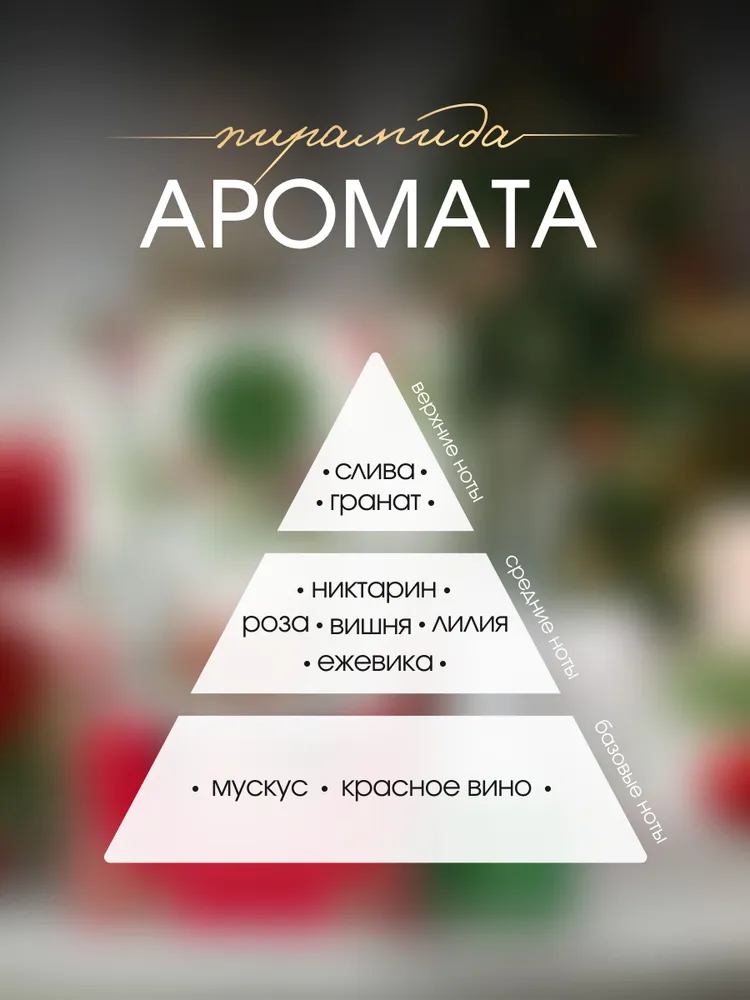 Почувствуйте чарующую атмосферу зимнего вечера с ароматическим диффузором «Вечер у камина» — ярким, тёплым и уютным, наполняющим дом ощущением праздника и спокойствия. Этот аромат переносит в момент, когда за окном темнеет рано, а в комнате царит мягкое свечение гирлянд, уют и тепло домашнего очага. Композиция начинается с сочных нот сливы, граната и ежевики, создавая фруктовую свежесть с лёгкой кислинкой, которая бодрит и наполняет пространство жизненной энергией. Сердце аромата раскрывается богатыми цветочными и фруктовыми аккордами — розы, водяной лилии, вишни и нектарина, придавая композиции глубину, сладость и элегантность. Базовые ноты мускуса и красного вина создают чувственный шлейф, оставляющий ощущение тепла, комфорта и легкой роскоши — словно вечер у камина с бокалом вина в руках. Элегантный флакон и праздничная открытка в комплекте делают диффузор идеальным подарком к Новому году или Рождеству. Он наполнит ваш дом атмосферой праздника, тепла и гармонии, создавая настроение, в котором хочется отдыхать, наслаждаться моментом и делиться уютом с близкими.