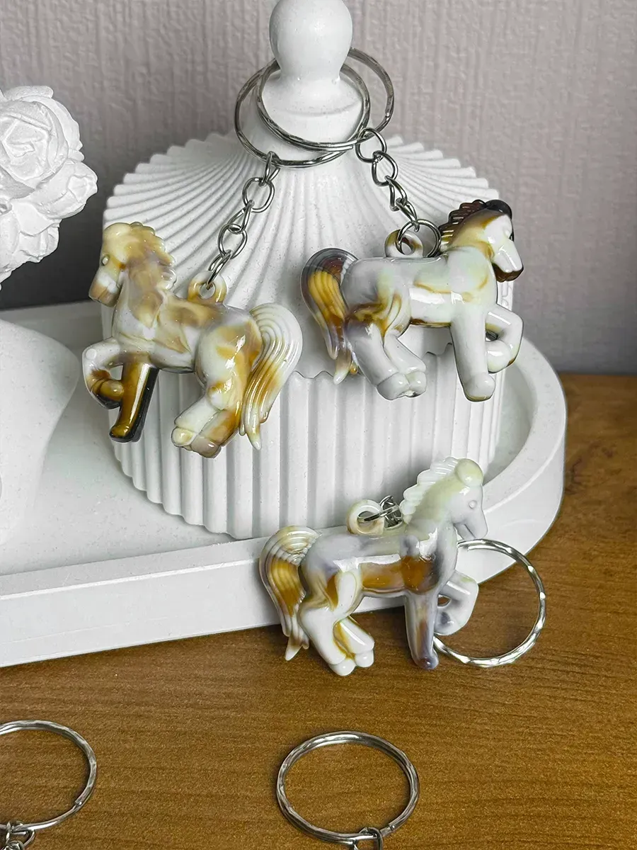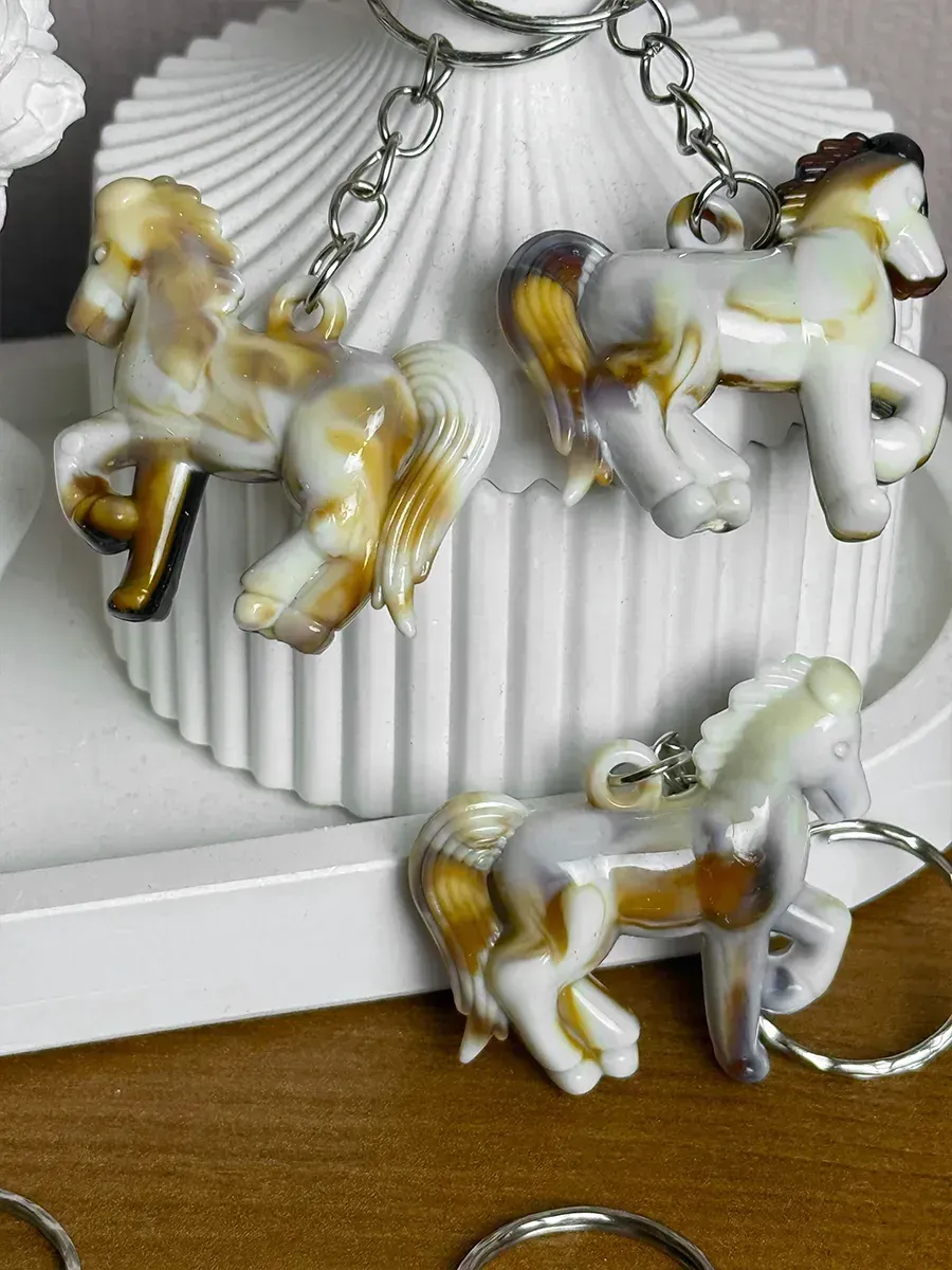 Оригинальный и полезный аксессуар изготовлен из высококачественного пластика, двухсторонний и объемный, имитация камня оникс. Можно использовать для ключей, на рюкзак, на телефон, на сумку или шоппер. Конь прорисован с высокой точностью, включая такие элементы, как грива, хвост и ноги. Очень легкий и компактный.
