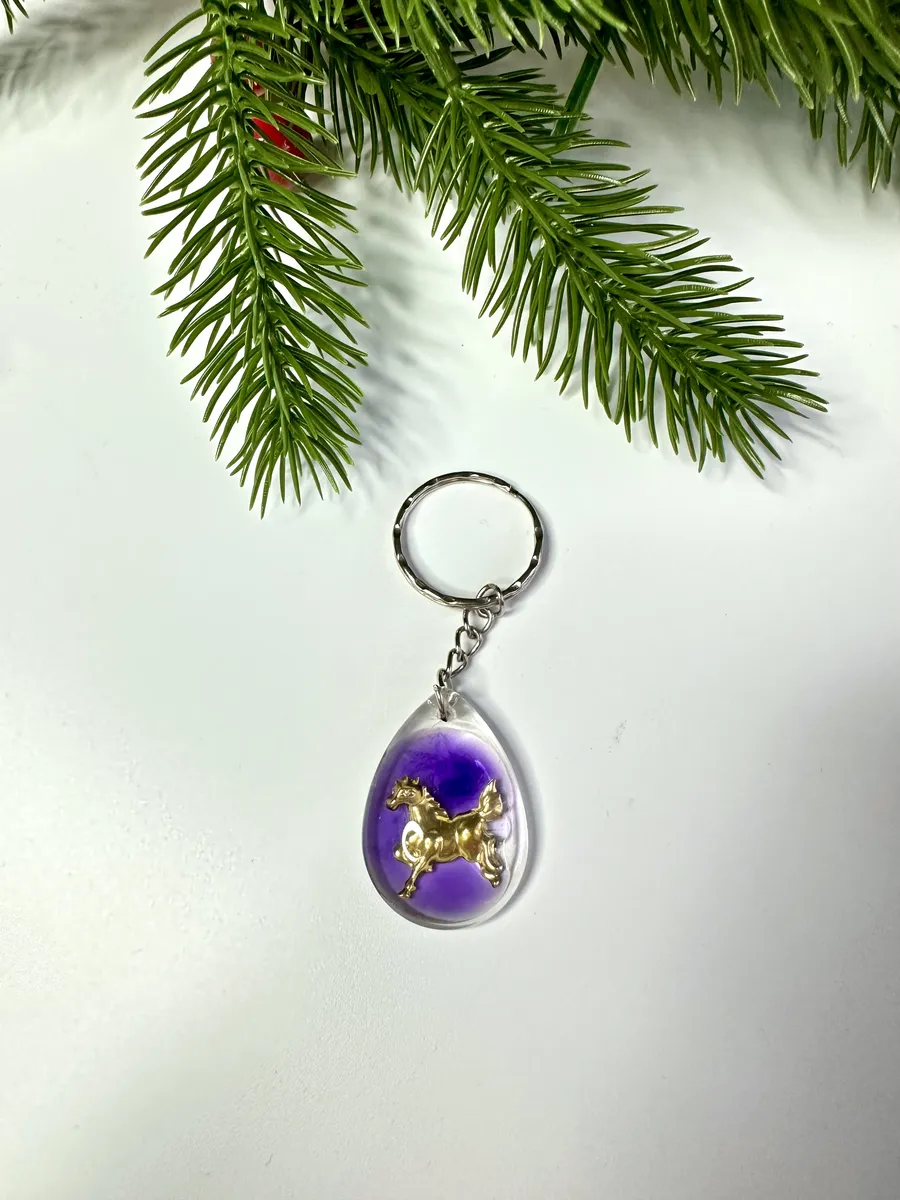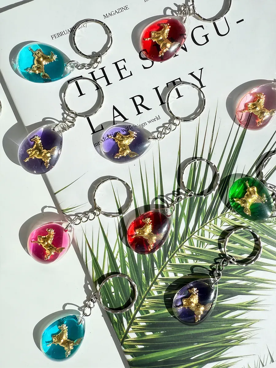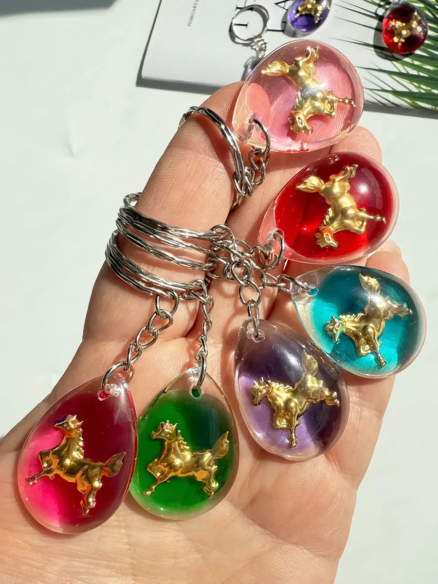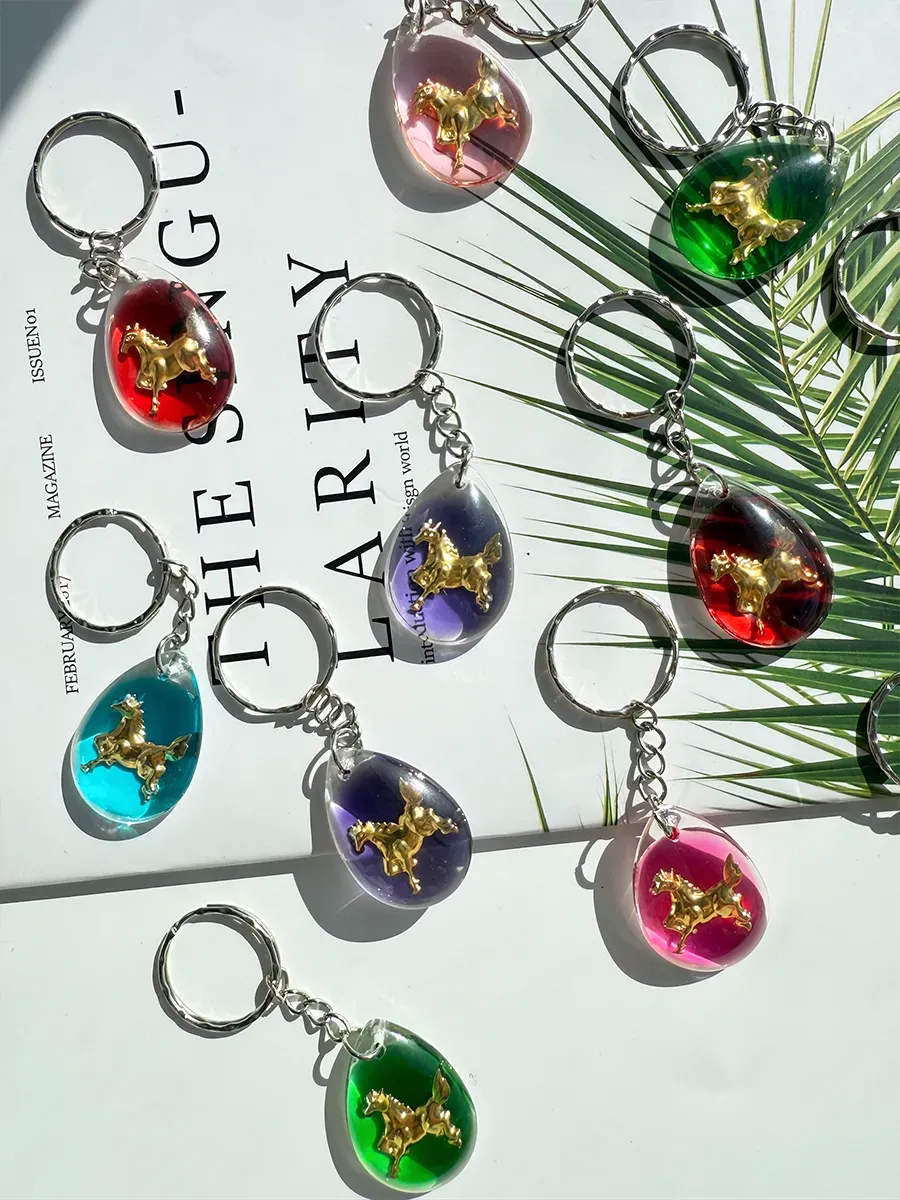 Прозрачные брелоки Золотые Лошади в эпоксидной смоле, напоминают настоящее стекло, идеально демонстрирует детализированное изображение лошадки, которая словно охраняет ваши ключи. Материал устойчив к повреждениям и влаге, не выцветает, долговечный. Легкий и компактный, милое украшение на пенал и портфель, телефон, на ключи автомобиля и машины, квартиры.