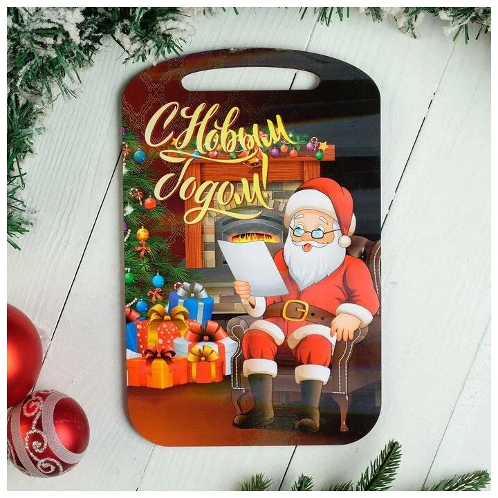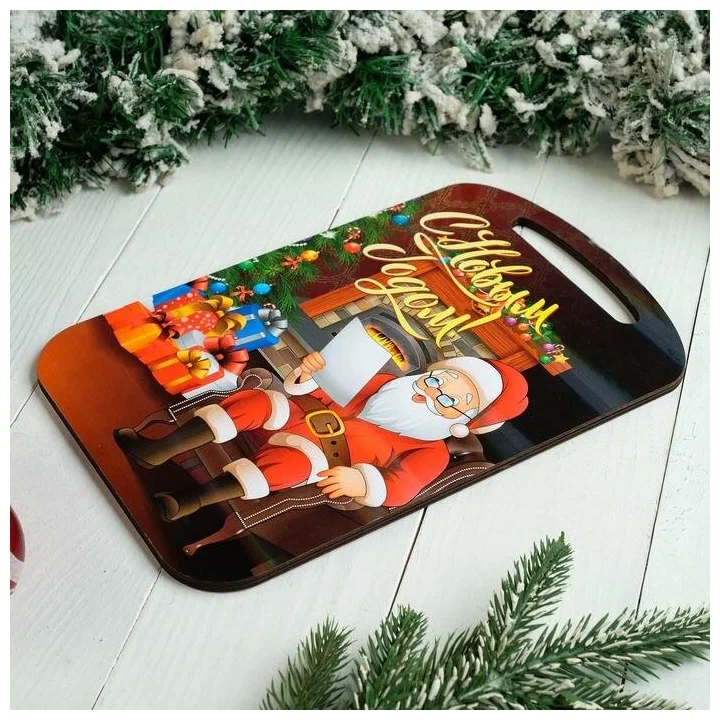 Доска разделочная "Новогодняя. Дед Мороз читает сказку", дерево, 27х18 см