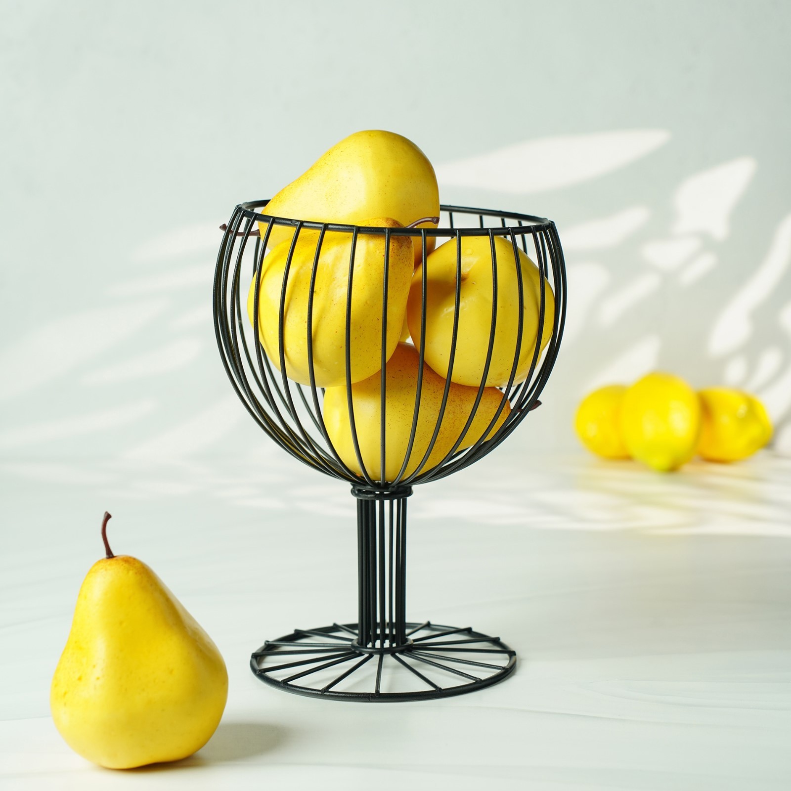 Стильная ваза для фруктов станет идеальным дополнением любого интерьера. Корзинка выполнена из окрашенного металла, что защищает её от коррозии. Благодаря оригинальному дизайну, фруктовница станет украшением вашей кухни или праздничного стола. Удобная конструкция позволит дольше сохранить фрукты свежими.