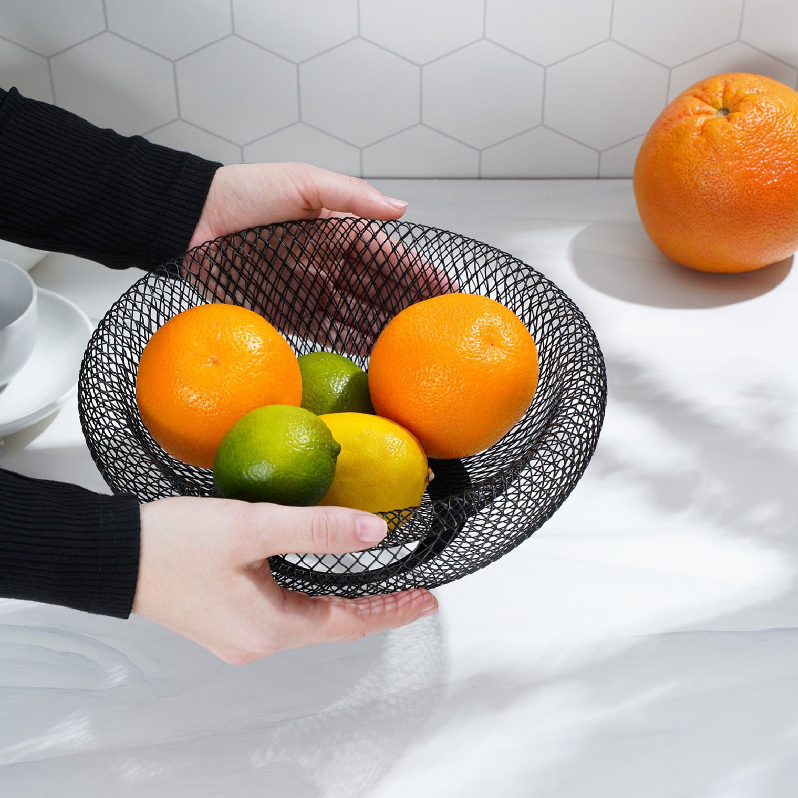 Изготовленная из прочного металла, эта фруктовница обеспечивает долговечность и лёгкость в уходе. Гладкая текстура придаёт ей современный вид, который будет органично смотреться как в классическом, так и в современном интерьере. Хотя мыть её в посудомоечной машине не рекомендуется, ручная чистка не займет много времени.