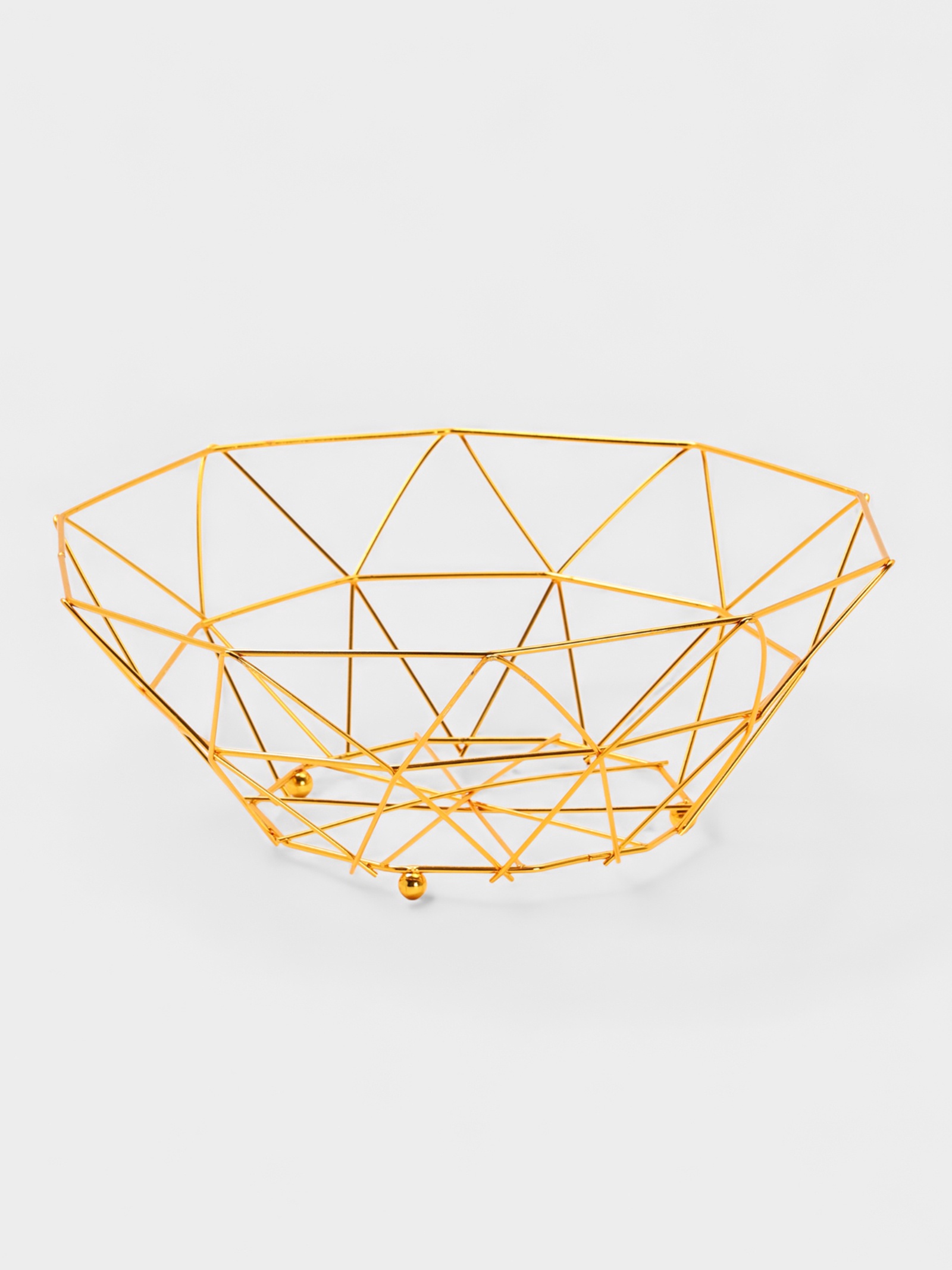 Фруктовая ваза «Геометрия Голд» — скульптурный акцент для кухни или столовой, где функциональность встречается с современным дизайном. Её фигурная форма и золотистый оттенок превращают даже простую подачу фруктов в эстетичную композицию, а гладкая металлическая поверхность подчёркивает чистоту линий без лишнего декора.