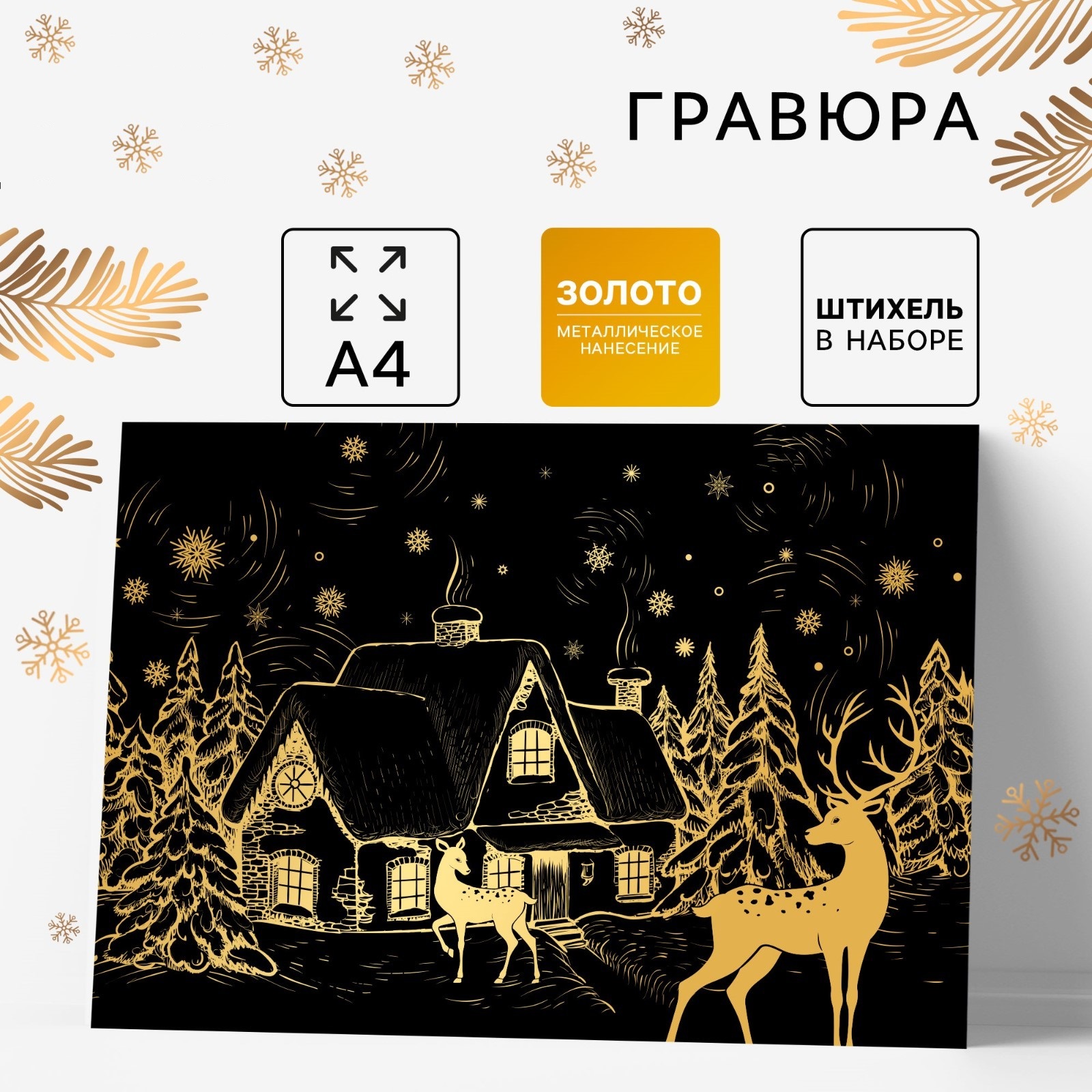 Гравюра «Зимний пейзаж», с золотым эффектом, А4