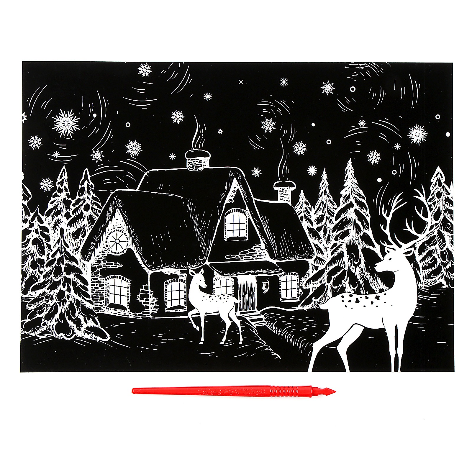 Гравюра – древнее искусство, получившее своё распространение ещё несколько столетий тому назад, а теперь доступное даже ребёнку. Техника гравюры особенная, невероятно увлекательная, но при этом достаточно простая. Гравюра представляет собой многослойное панно, покрытое чёрной краской, на которое нанесён контур рисунка. С помощью особого скребка (штихеля), который входит в набор, путём процарапывания и создается гравюра. Поместите готовую работу в раму, и она станет достойным украшением комнаты или прекрасным подарком родным и близким.