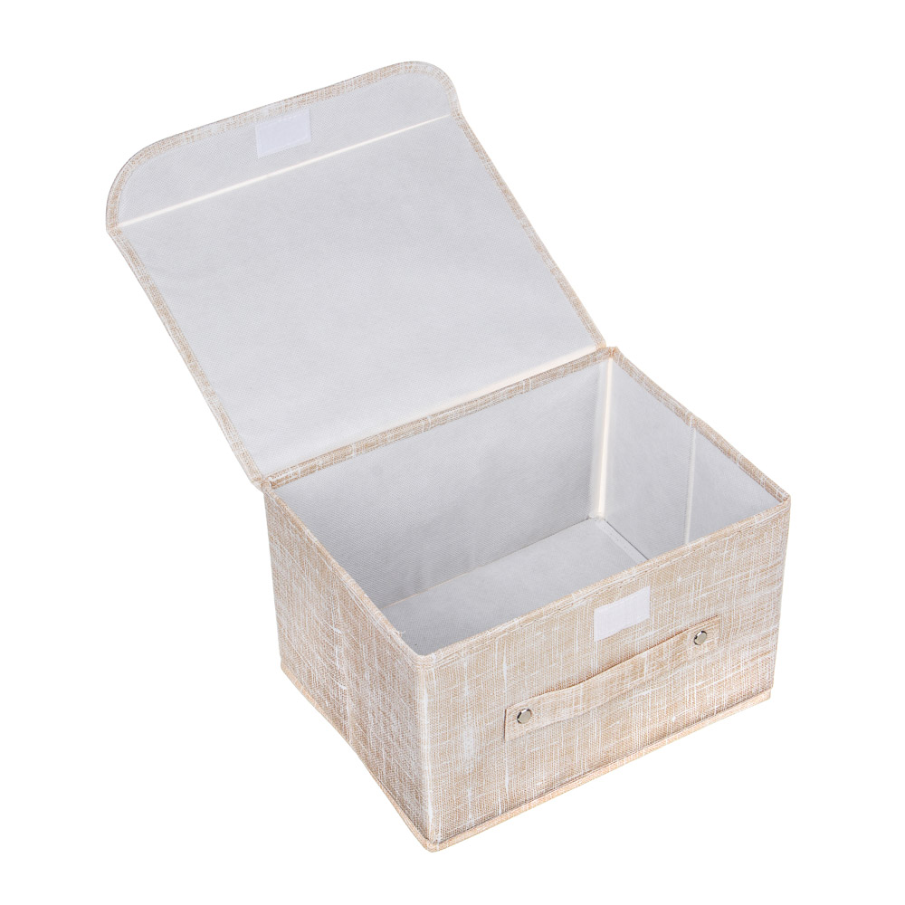 Короб для хранения 26х20х15 см – это компактный и одновременно вместительный кофр для одежды, который можно также использовать для хранения хозяйственных принадлежностей и игрушек. Имеет жесткие стенки, отлично держит форму. Оснащен надежной крышкой, которая защищает содержимое от пыли, поэтому короб можно хранить в любом месте в доме: внутри шкафа для одежды, на полке, на полу и даже под кроватью.