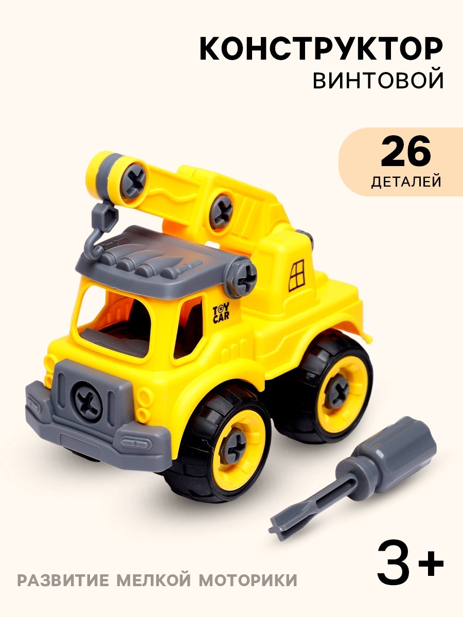 Конструктор винтовой «Машина с краном»», с отвёрткой, 26 деталей