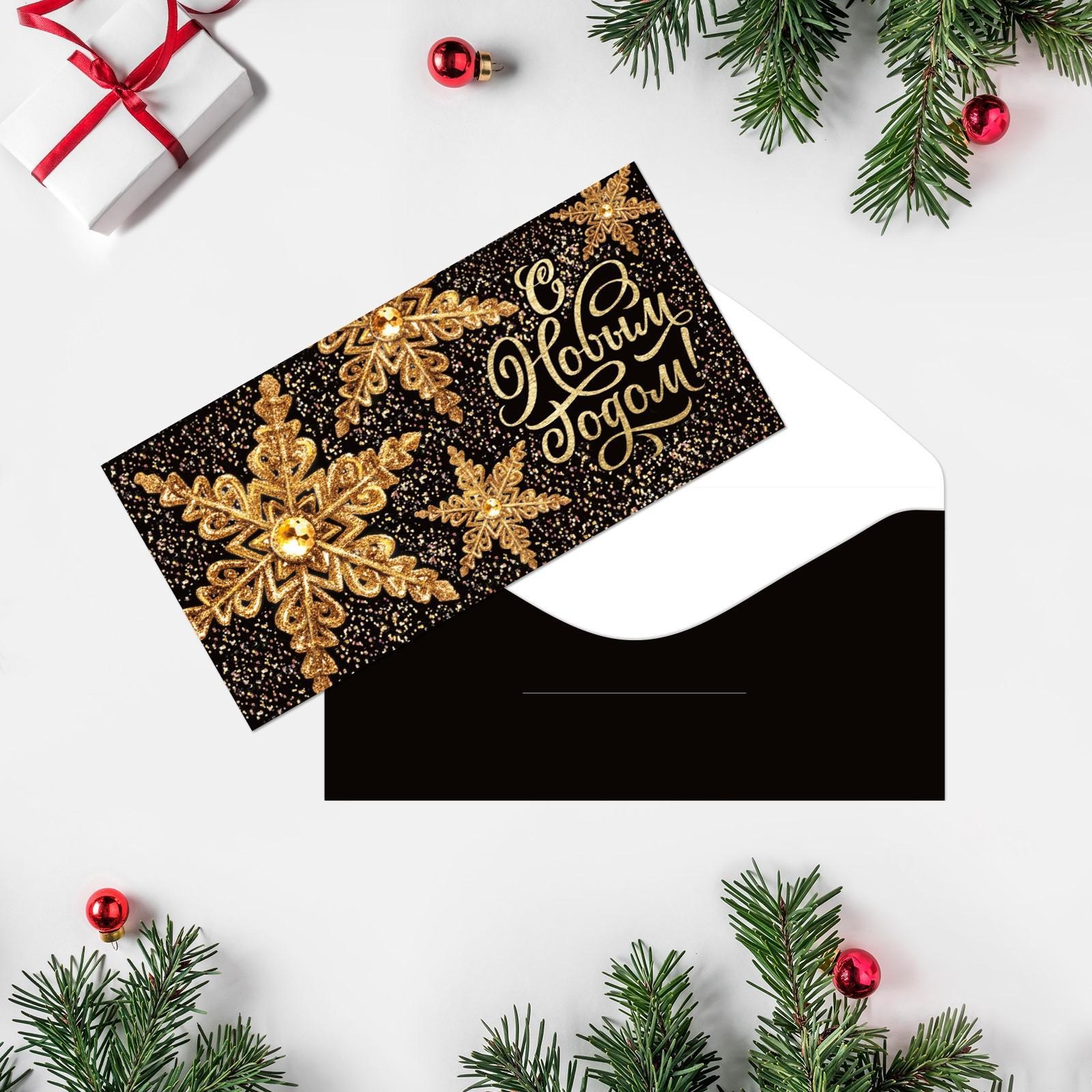 Конверт для денег «С Новым годом. Золотые звезды», 16,5×8 см
