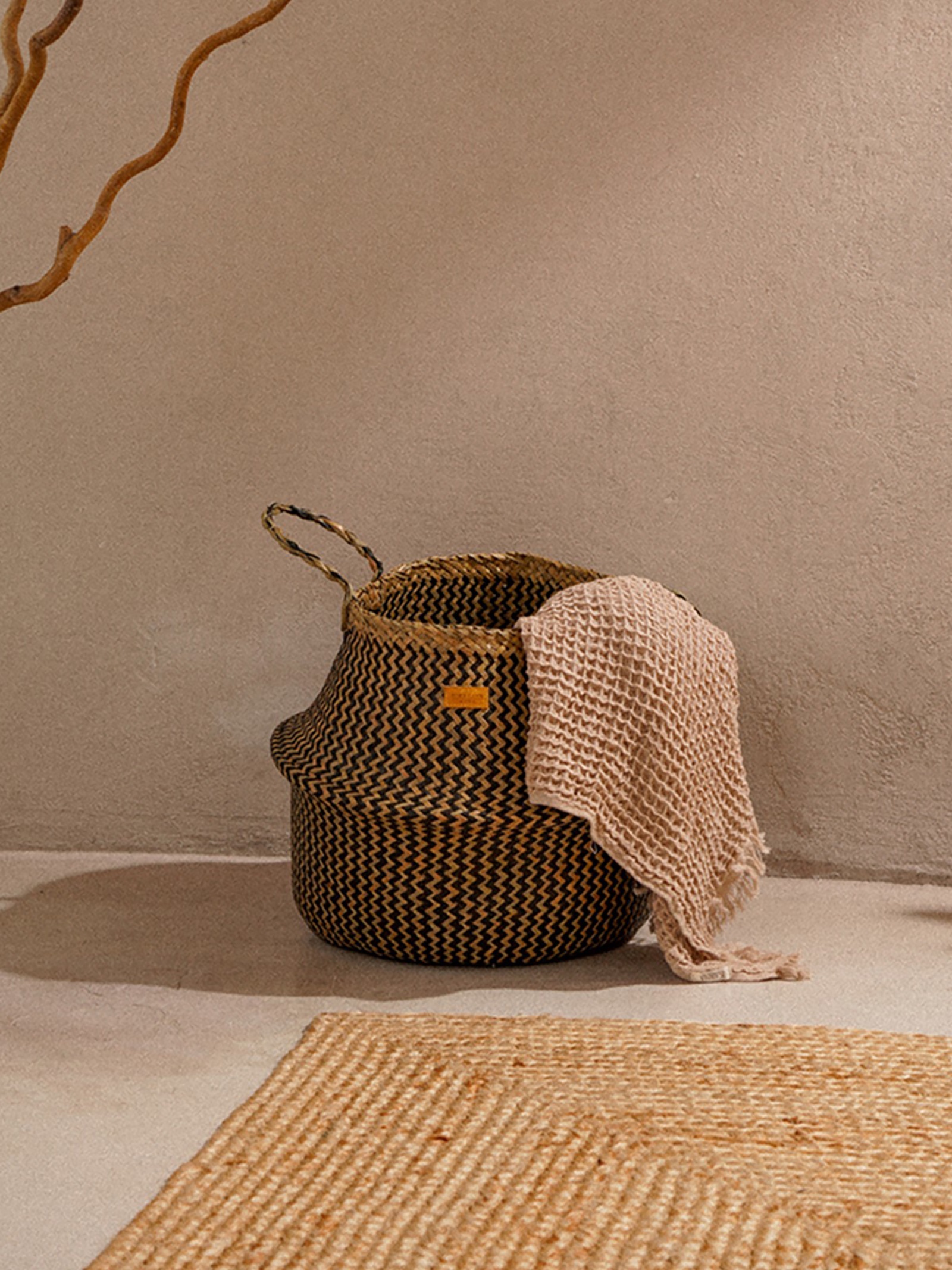Добавьте в ваш дом нотку естественной элегантности с плетеной корзиной для белья «Сорренто». Изготовленная из натурального камыша, эта корзина гармонично сочетает в себе стильный дизайн и функциональность, идеально вписываясь в любой интерьер. Эта цилиндрическая корзина, выполненная в благородных бежевых и черных оттенках, оснащена удобными ручками, что делает её перемещение легким и комфортным. Ее плетение украшено изысканными узорами, что придает изделию особую утонченность и шарм. Эта корзина станет не только полезным помощником в хранении вещей, но и стильным акцентом в вашем доме, подчеркивая ваш изысканный вкус и любовь к природным материалам.
