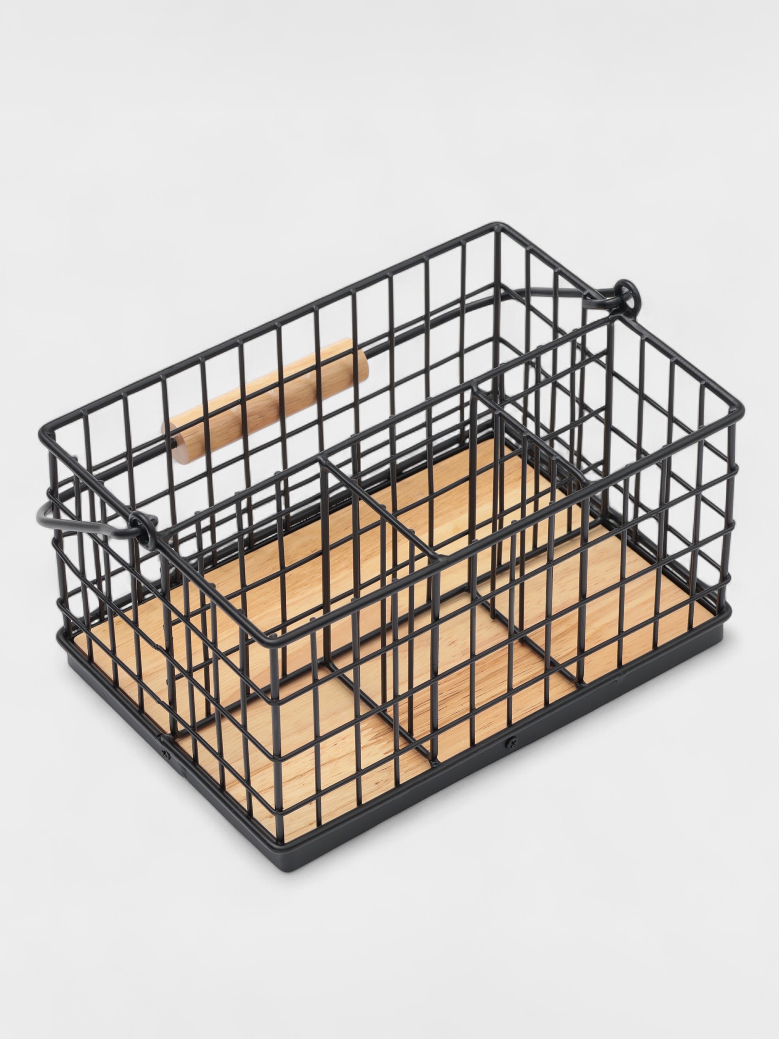 Корзина для мелочей - это идеальное решение для организации пространства в вашем доме. Изготовленная из качественных материалов, таких как металл и дерево, эта корзина не только прочная, но и эстетически привлекательная. Черный цвет делает её универсальной для любого стиля оформления. Используйте её для хранения мелочей, канцелярии, игрушек или даже в ванной для косметики. Корзина легкая и удобная, что позволяет легко перемещать её по дому.