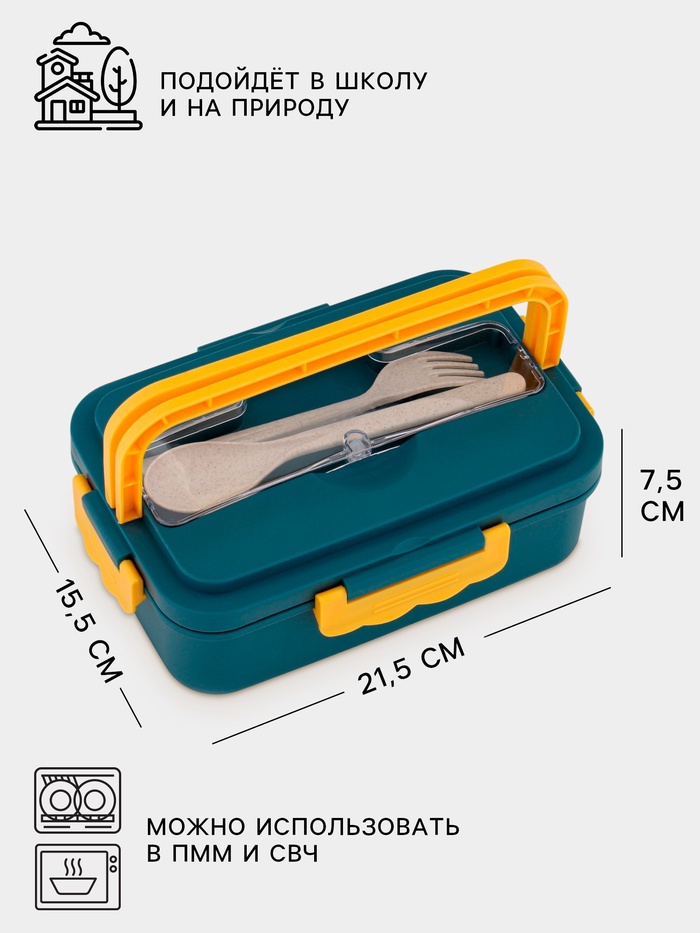 Этот ланч-бокс создан, чтобы сделать ваши перекусы максимально удобными и приятными. Большой объем в 1.3 литра дает возможность взять с собой полноценный обед. Продуманная конструкция с тремя ячейками для разных видов еды. Подходит для использования в микроволновой печи и посудомоечной машине. Защелки плотно закрывают контейнер, ручка для переноски добавляет комфорта.