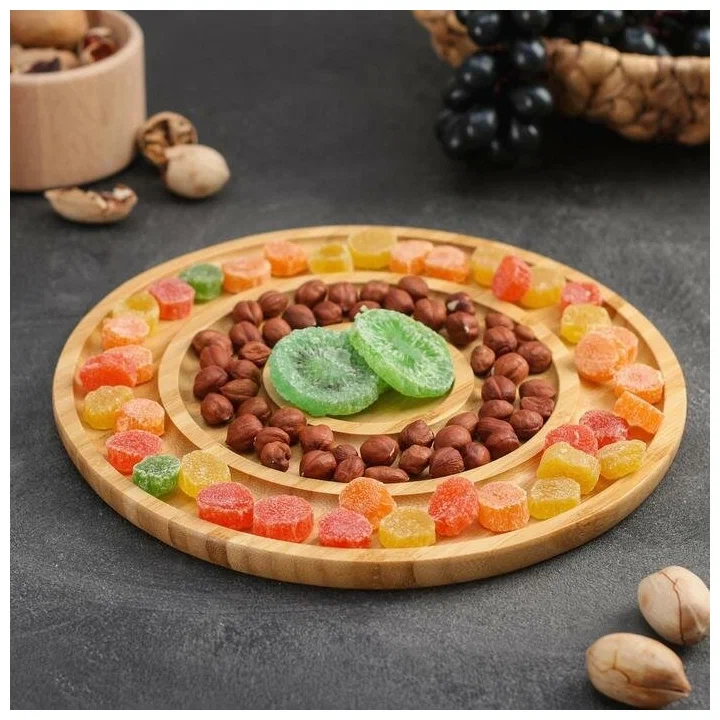 Никак не можете отучить себя от вредных перекусов? Изящная менажница из натурального дерева не даст вам пройти мимо орешков и сухофруктов. Изделие станет стильным и уютным элементом вашей кухни и незаменимым аксессуаром для сервировки стола.