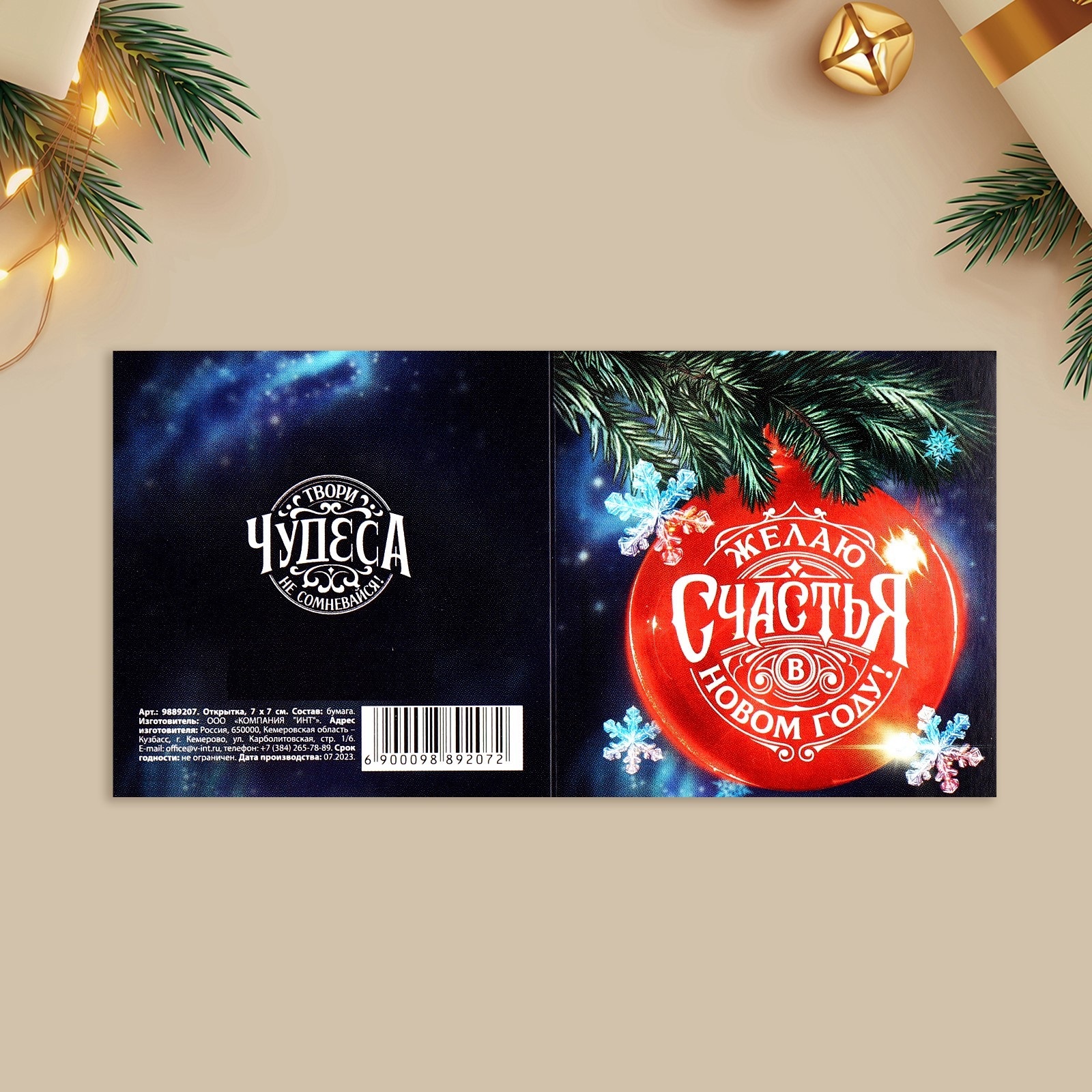 Мини‒открытка «С Новым годом! Желаю счастья!» красный шар, 7 × 7 см