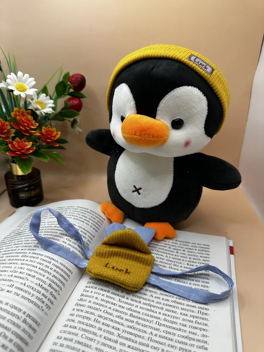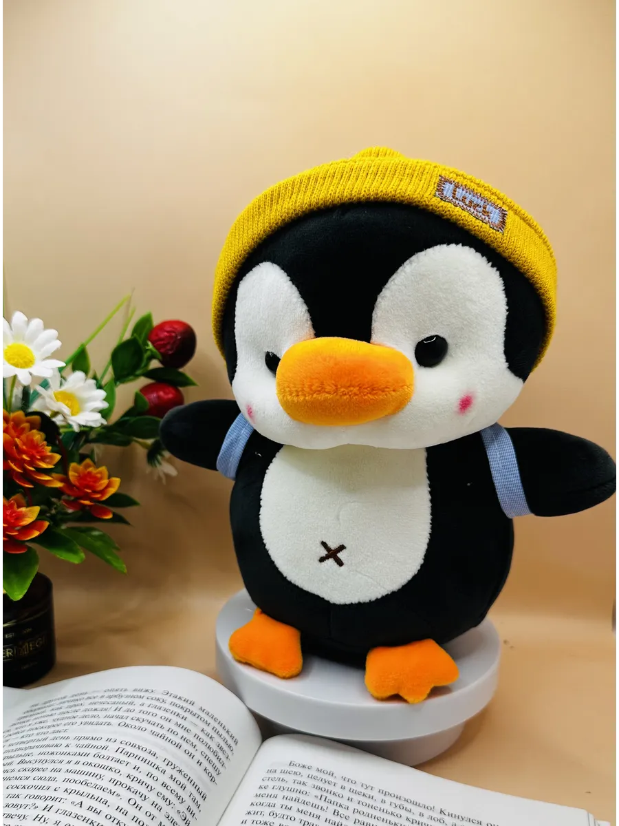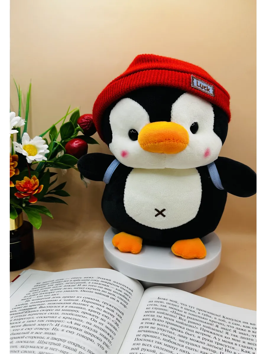 Мягкая игрушка пингвин в шапке и с рюкзаком станет милым и уютным спутником для детей и взрослых. Рюкзак и шапка съёмные. Эта плюшевая игрушка высотой 22 см сшита из высококачественного плюша и наполнена мягким синтепухом, что делает ее приятной на ощупь.
