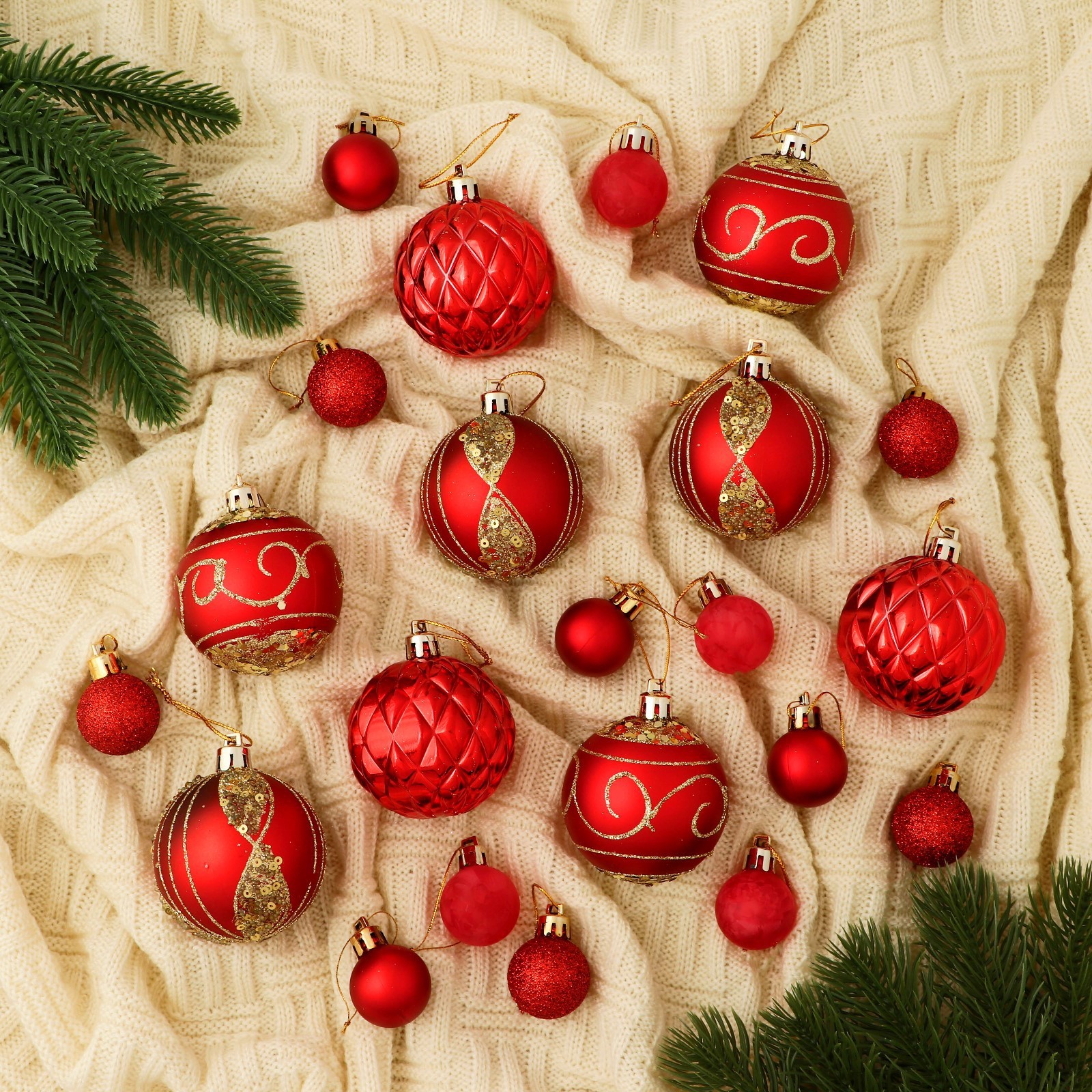 Набор шаров пластик d-2,5 и 5,5 см, 33 шт., красный