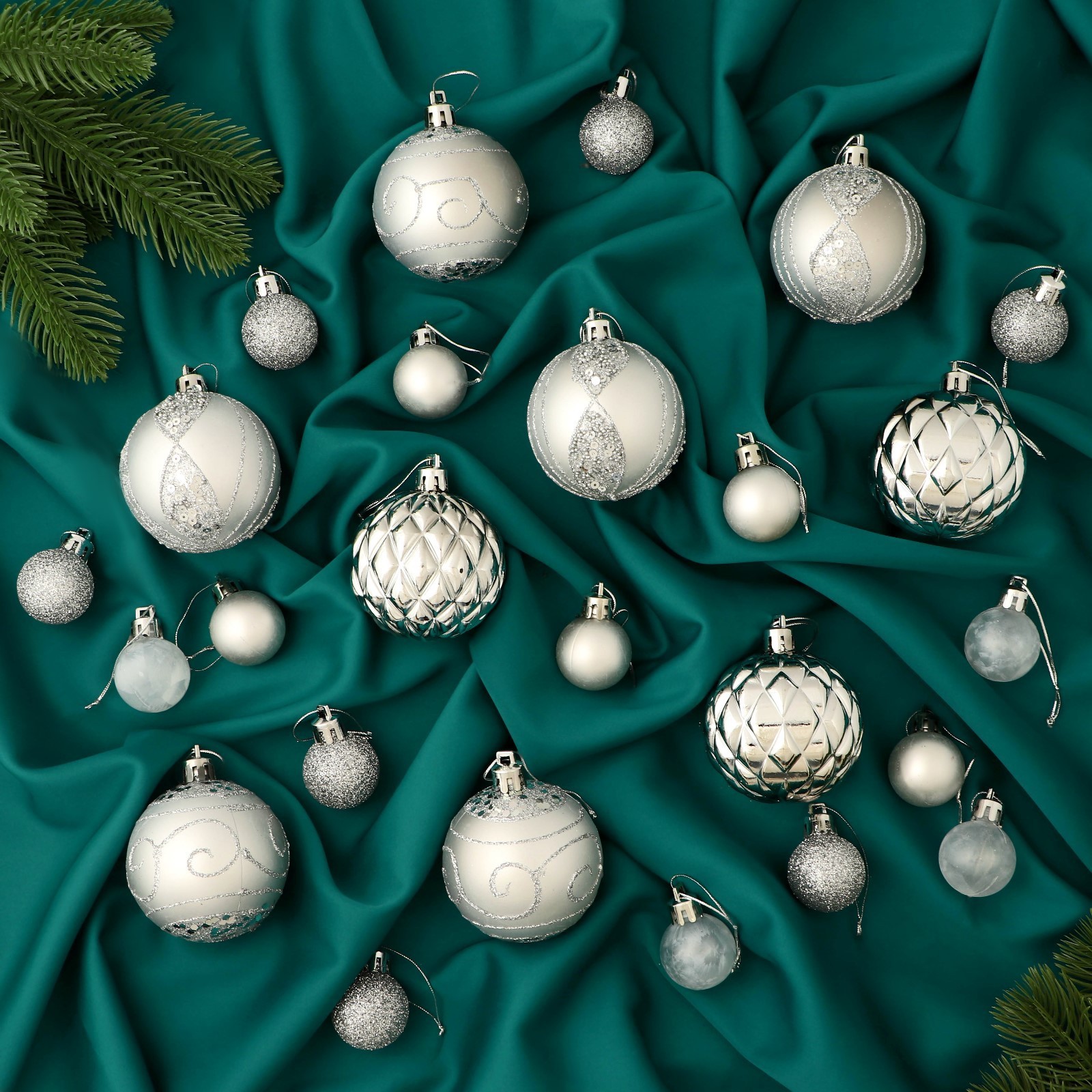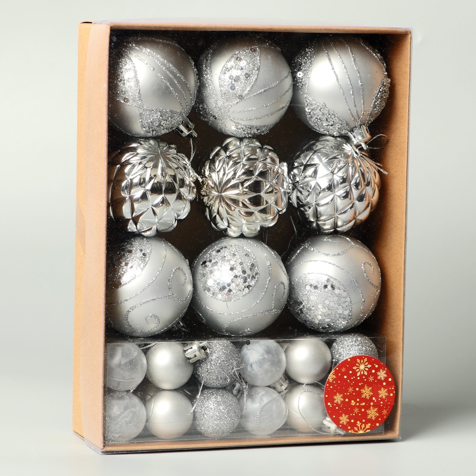 Набор шаров пластик d-2,5 и 5,5 см, 33 шт., серебро
