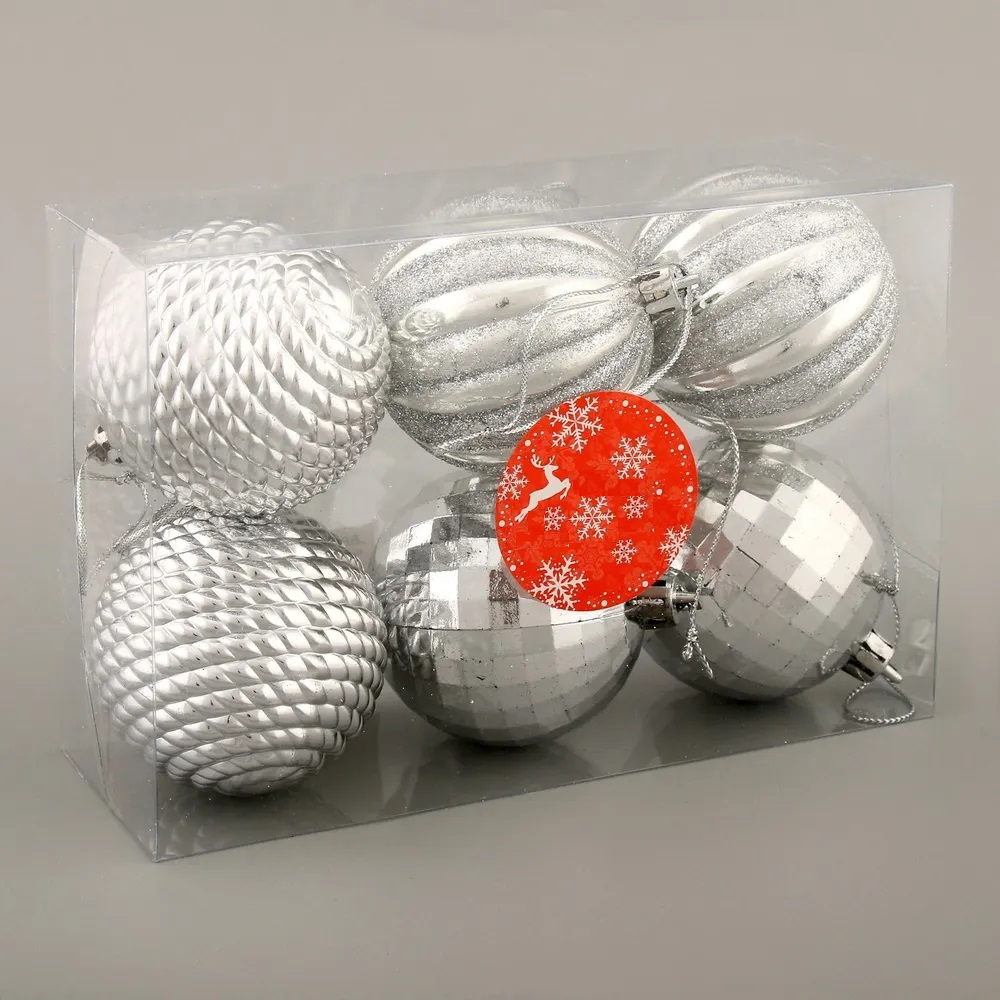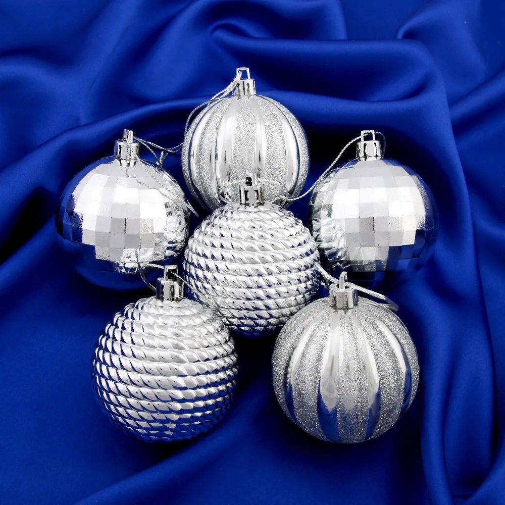 Набор шаров пластик d-6 см, 6 шт., серебро