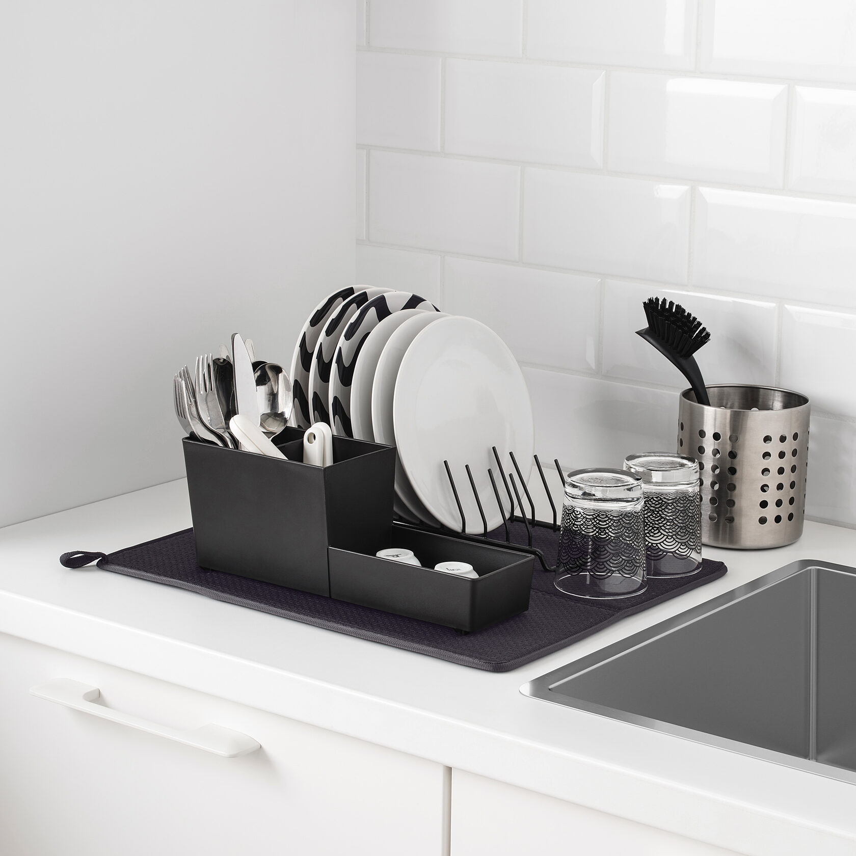 НЮХОЛИД Коврик для сушки посуды, темно-серый, 44x36 см