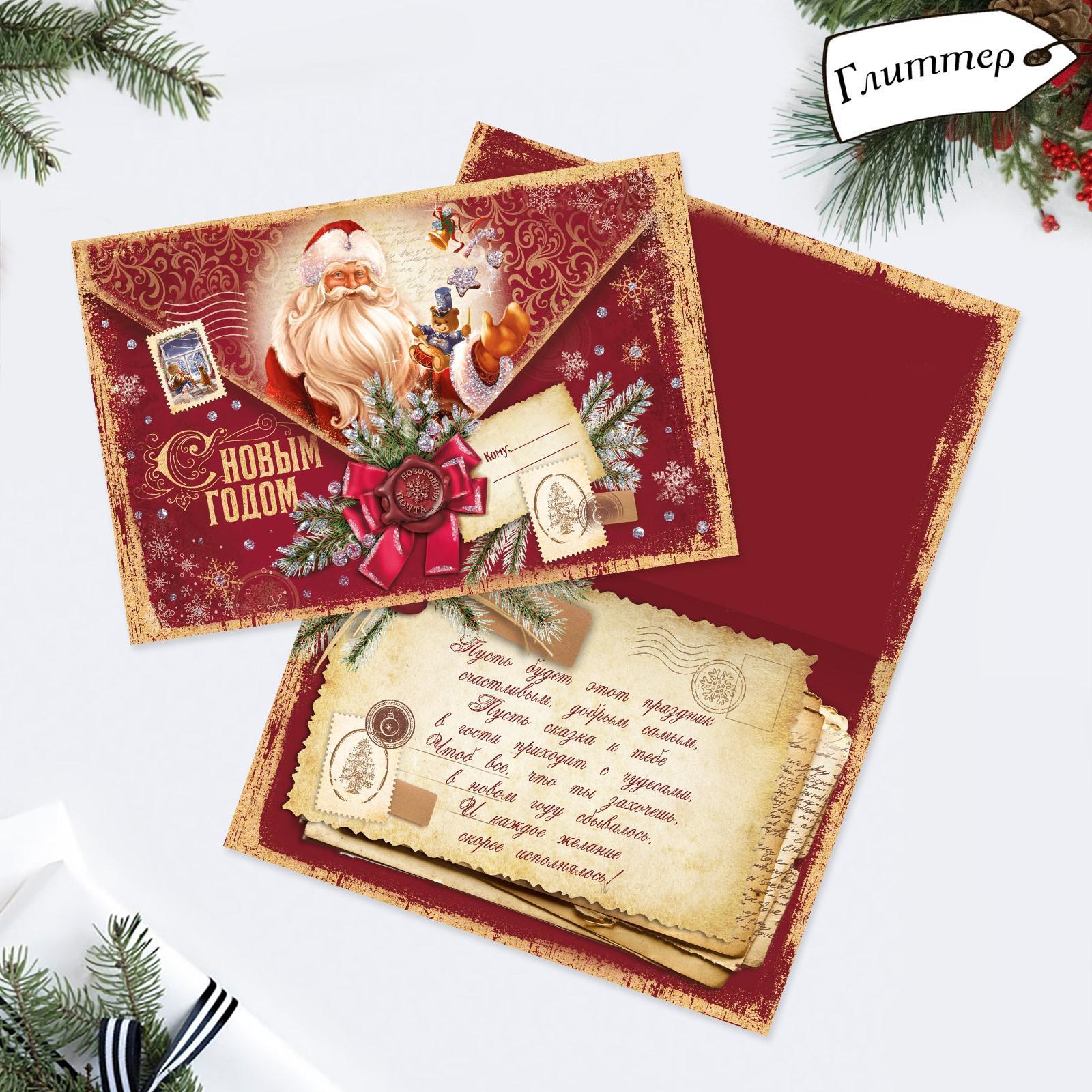 Открытка «С Новым годом», глиттер, письмо, 12 х 18 см