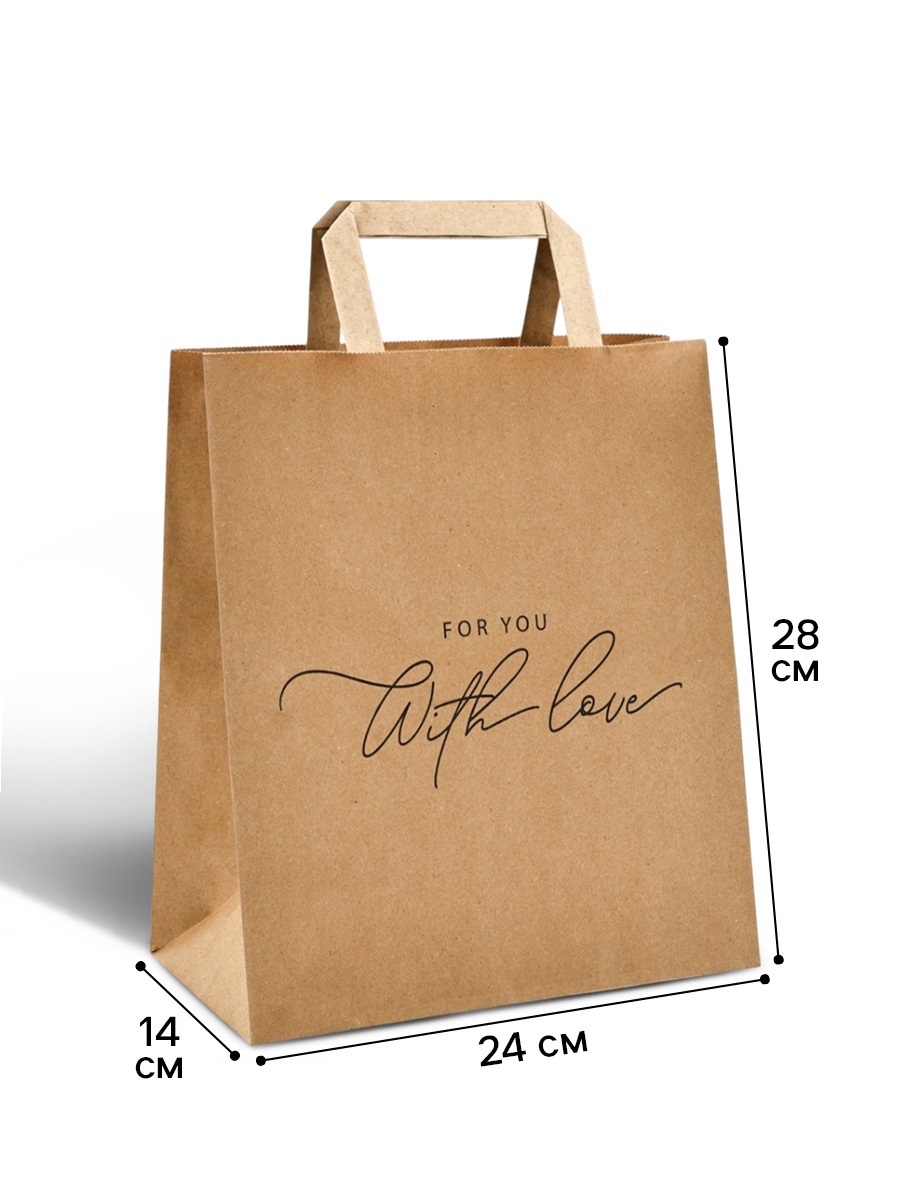 Пакет крафт For you with love, 24 х 28 х 14 см