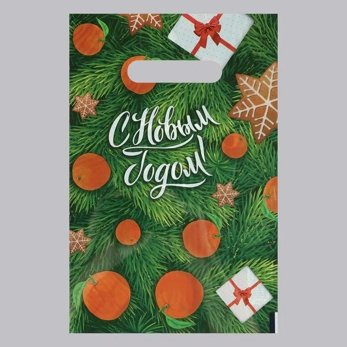 Пакет полиэтиленовый, с вырубной ручкой, 20 х 30 см, 30 мкм "С Новым Годом"