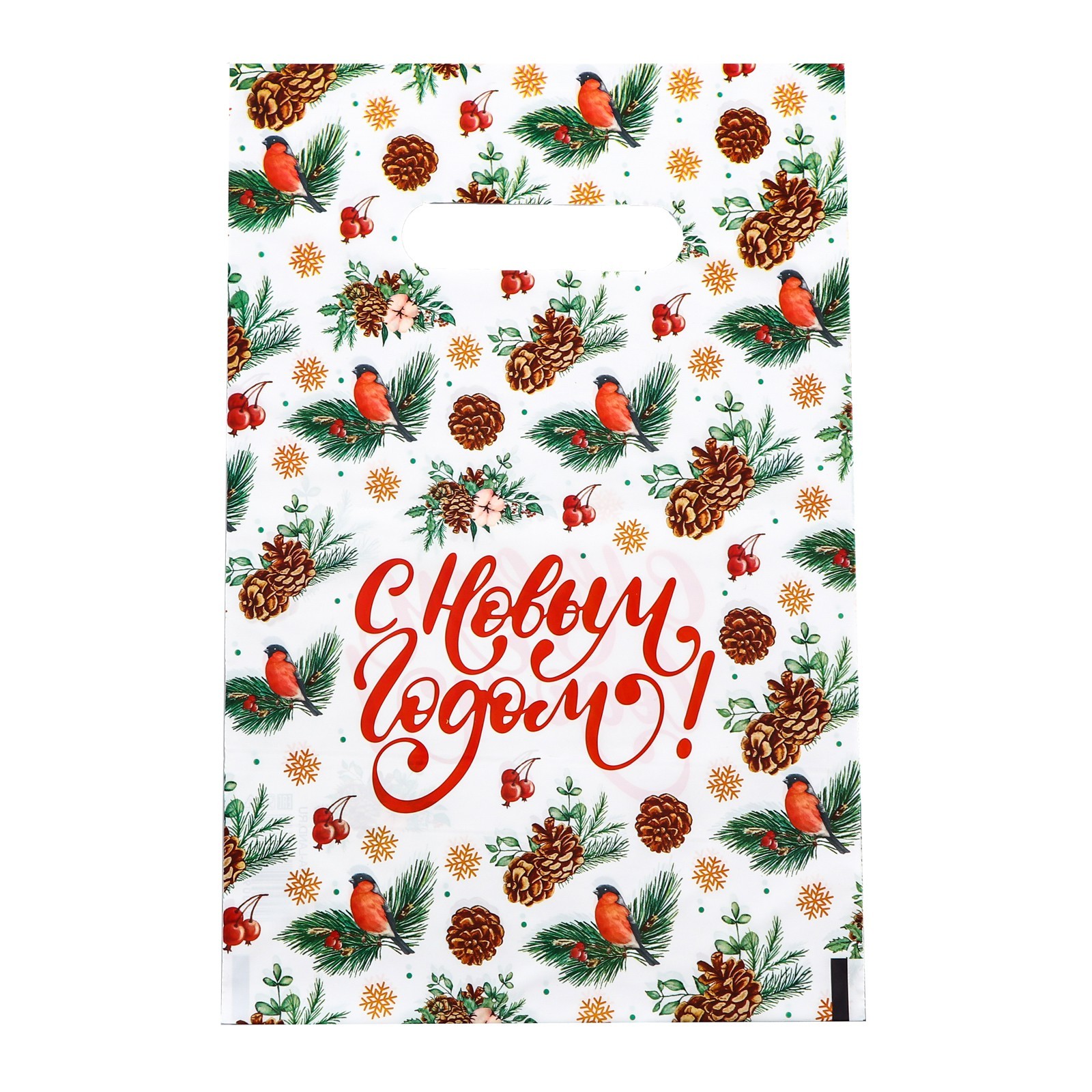 Пакет полиэтиленовый, с вырубной ручкой, 20 х 30 см, 30 мкм "С Новым годом, снегири"