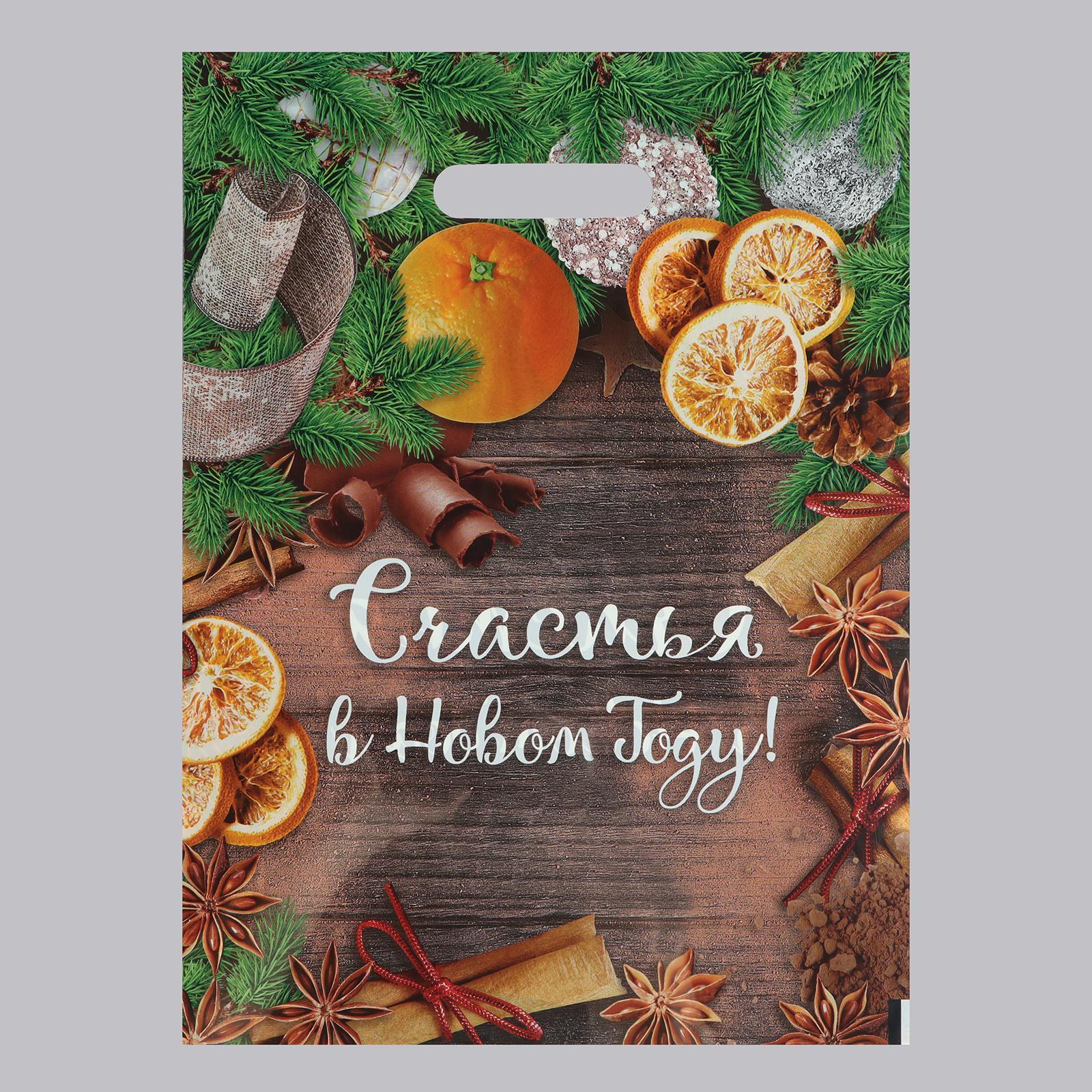 Пакет полиэтиленовый с вырубной ручкой, 30 х 40 см, 50 мкм "Счастья в Новом Году"