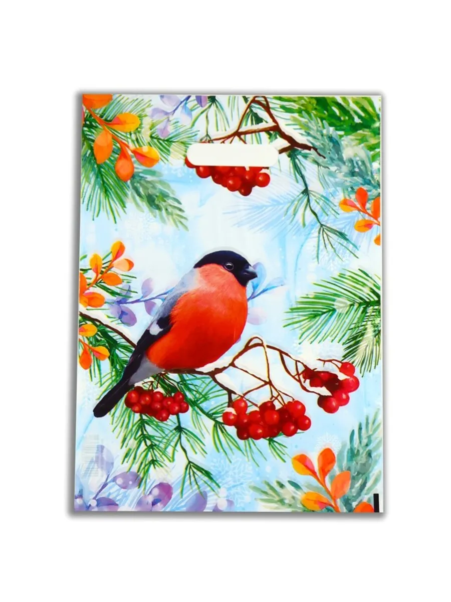 Пакет полиэтиленовый с вырубной ручкой, 30 х 40 см, 50 мкм "Снегирь на ветке рябины"