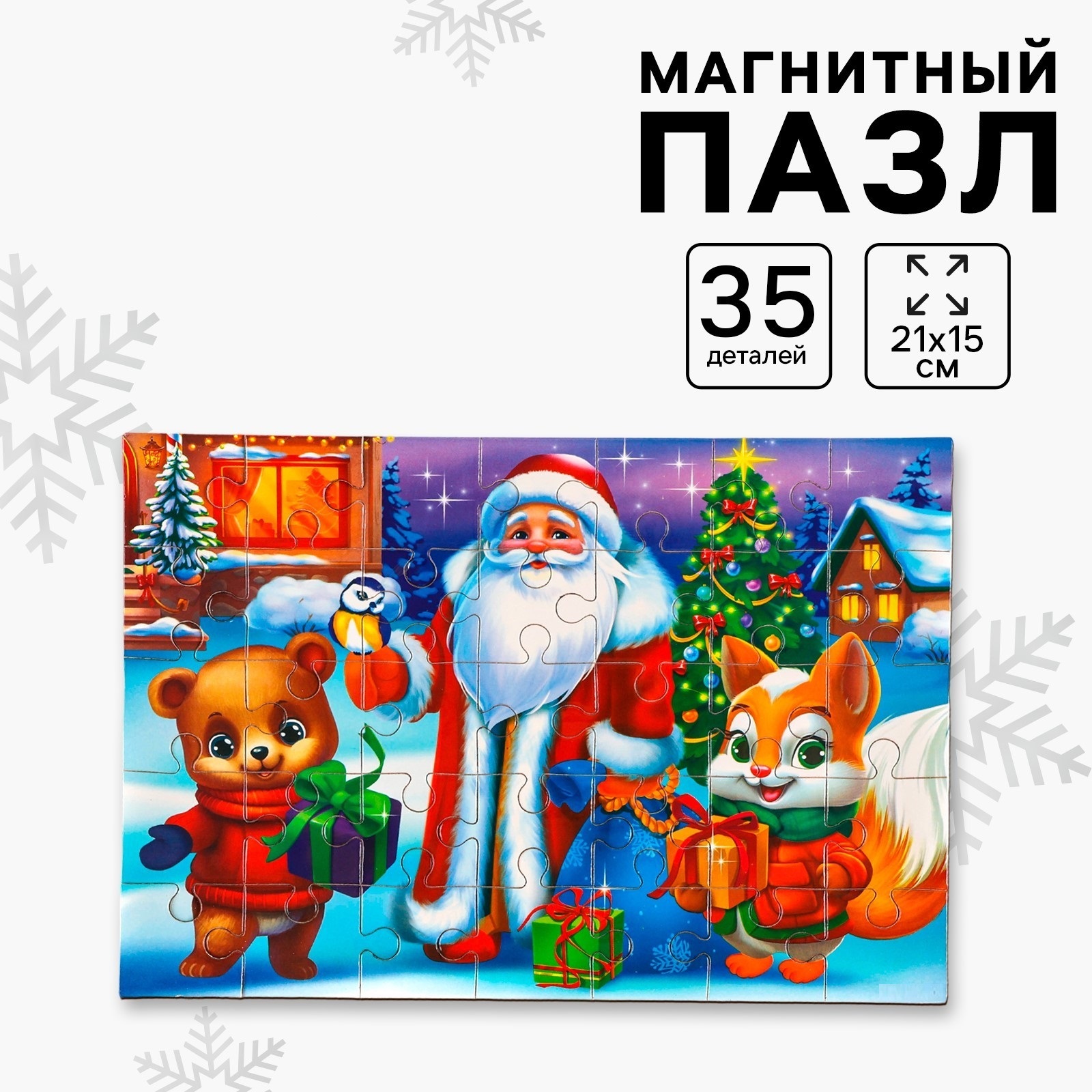 Пазл магнитный деревянный «Новый год! Звери», 21×15 см, 35 элементов