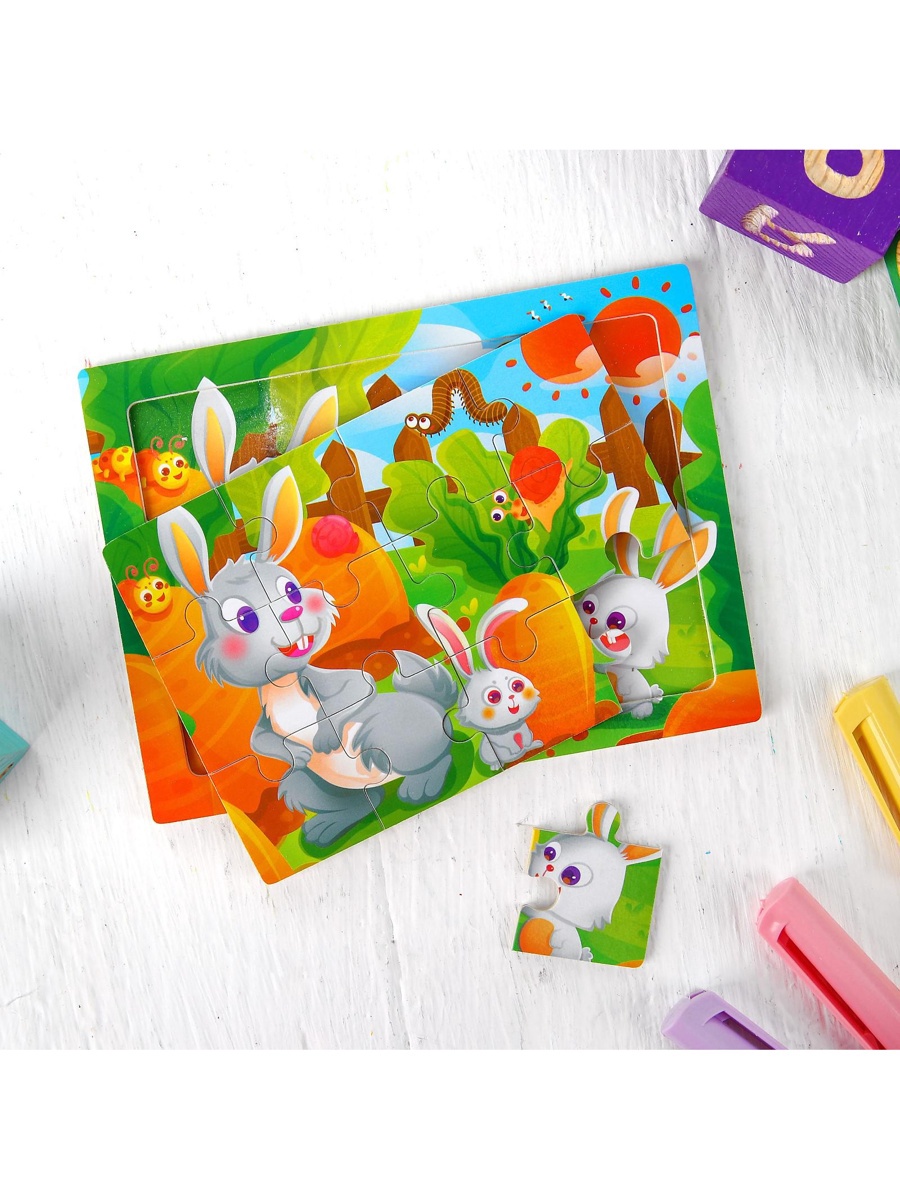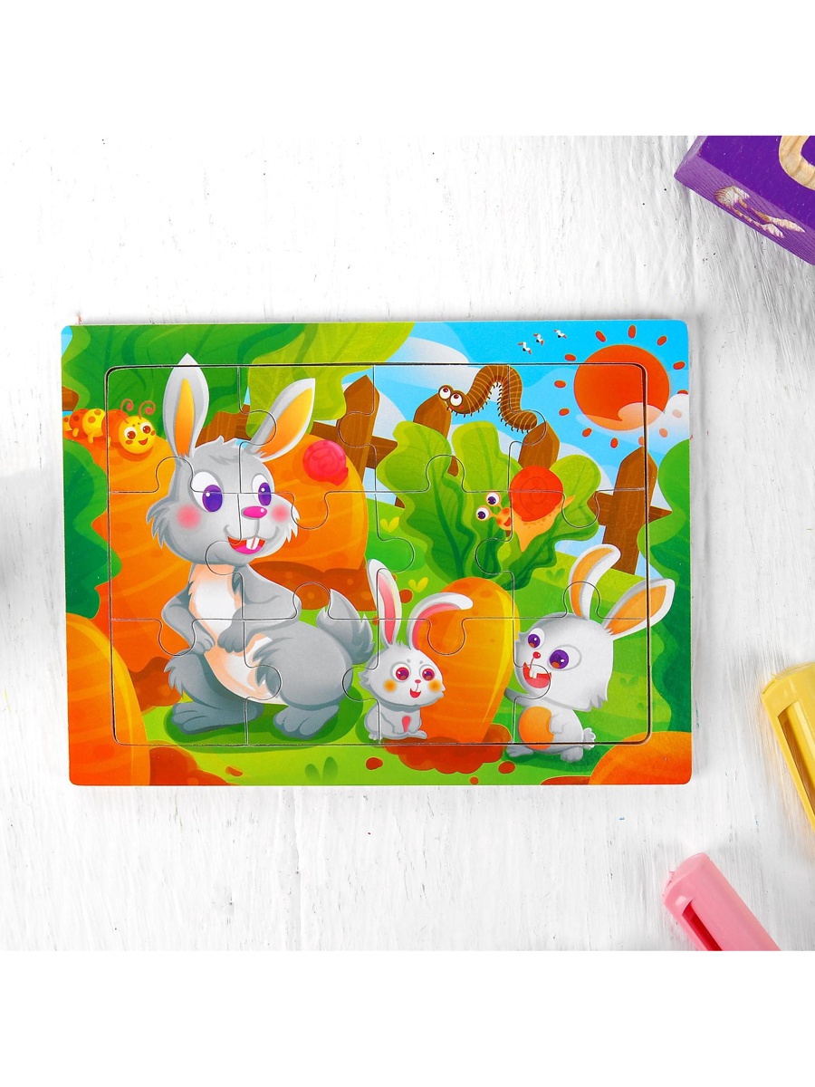 Пазл «Зайки», 12 деталей