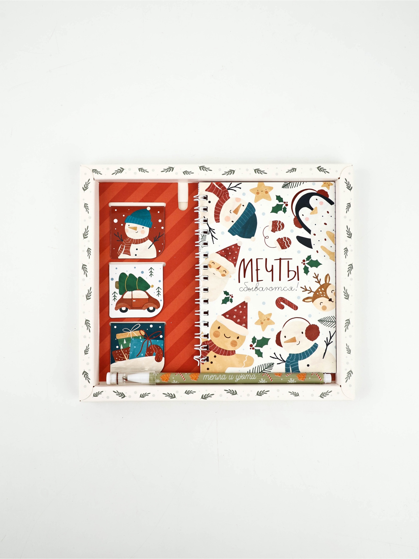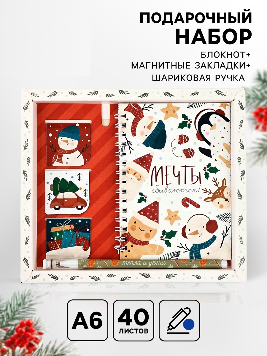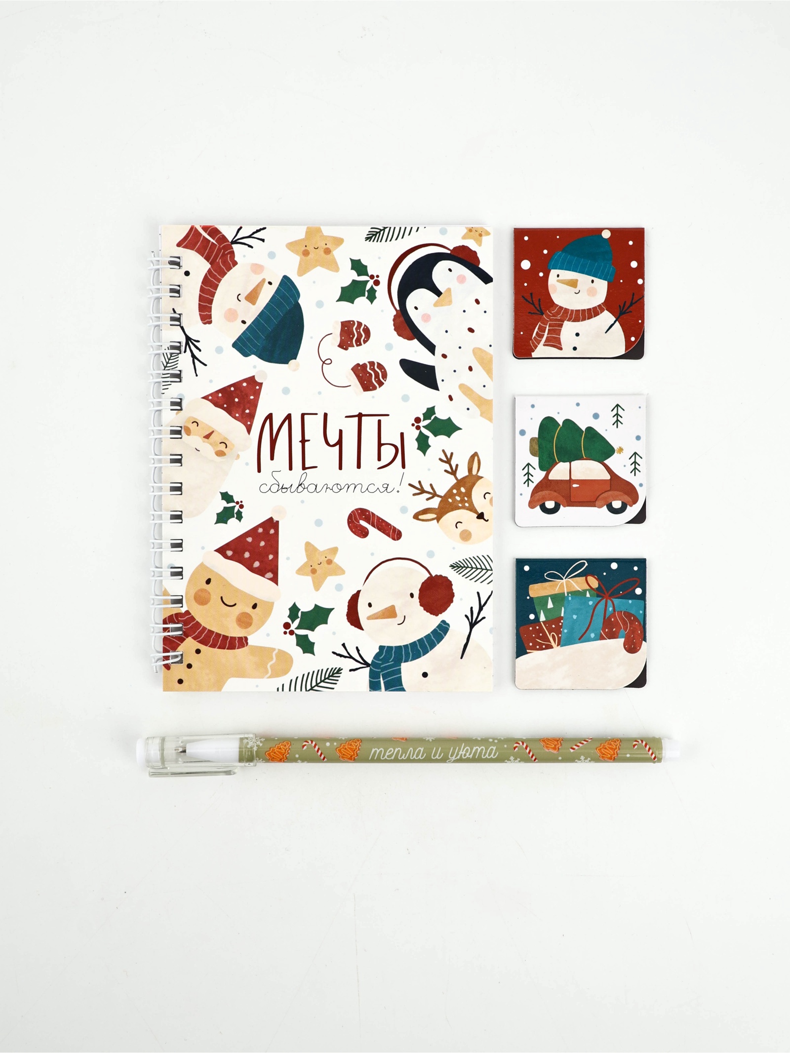 Подарочный набор новогодний, блокнот, ручка, магнитные закладки 3 шт. «Акварель»