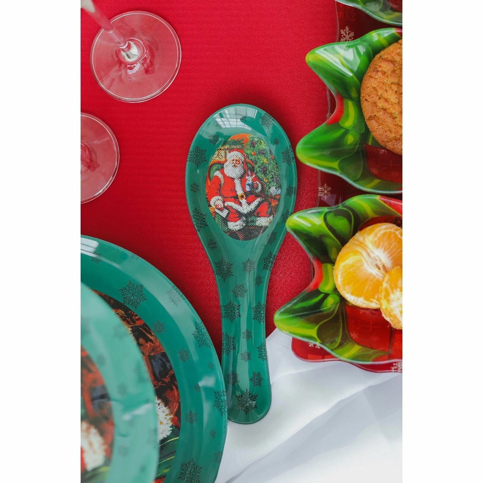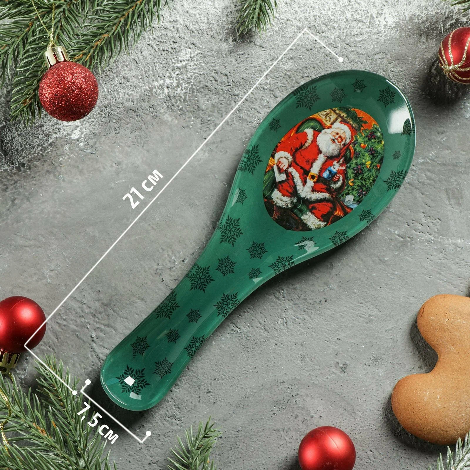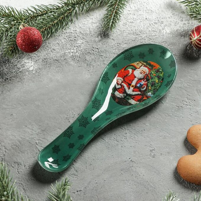 Подставка стеклянная под ложку «Счастливый Санта», 21×7,5 см, цвет зелёный