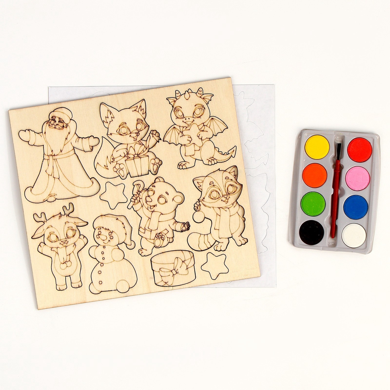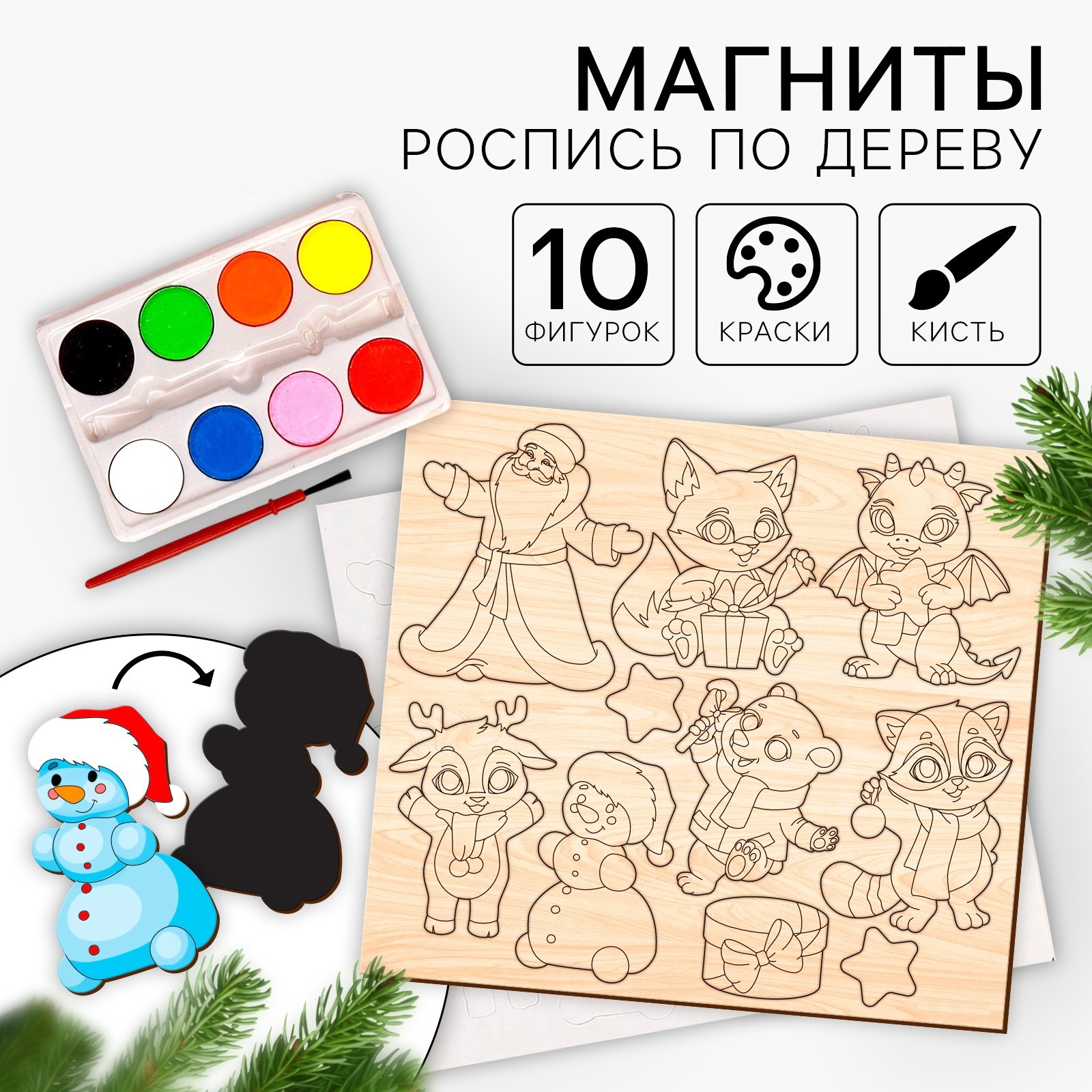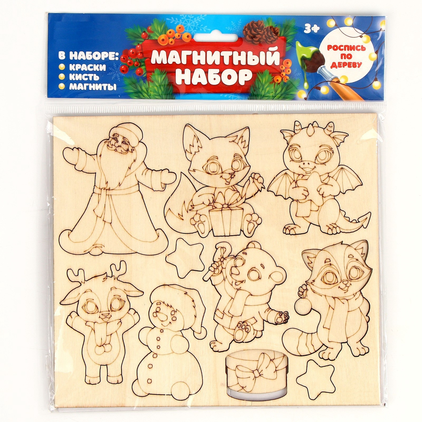 Роспись по дереву. Магнитный набор «Новый год! Лесные зверята»