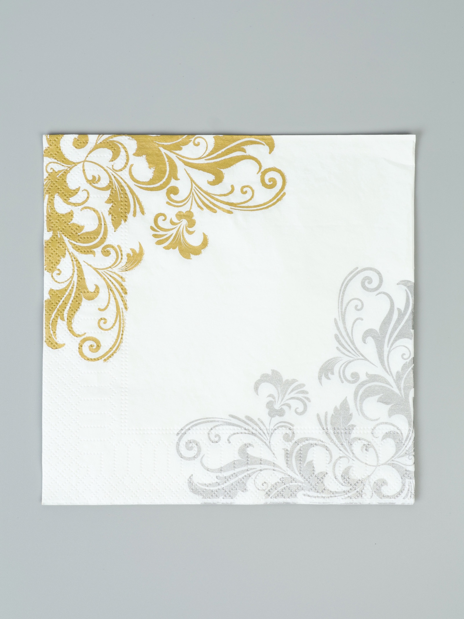 Салфетки бумажные — это стильный и практичный аксессуар для вашего дома. Размер каждой салфетки составляет 33х33 см, они состоят из трёх слоёв и выполнены из 100% целлюлозы. В упаковке 20 штук. Эти салфетки идеально подойдут для использования в домашнем интерьере, особенно на кухне. Благодаря своей плотности и трёхслойной структуре, салфетки обеспечивают отличную впитываемость.