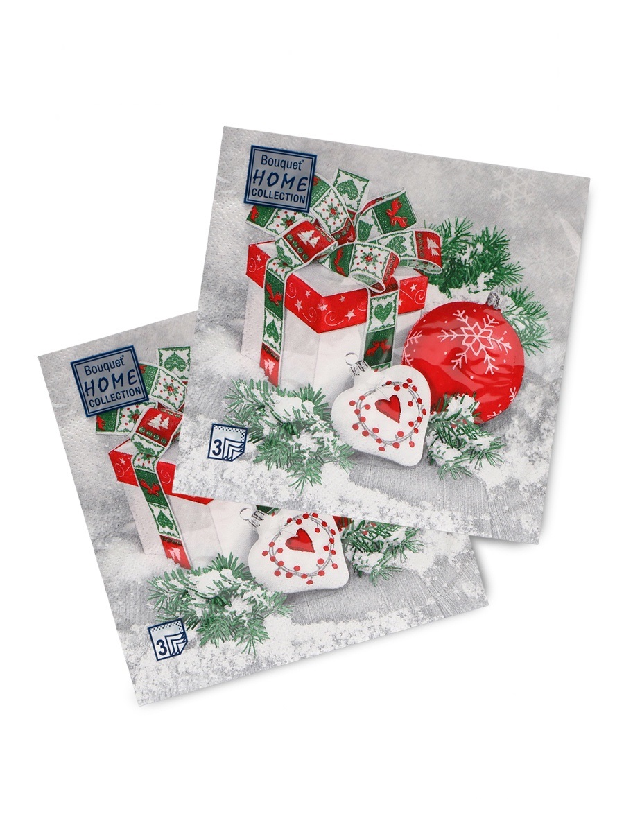 Салфетки бумажные "Новогодний натюрморт с подарком", 3 слоя, 33x33 см, 20 листов