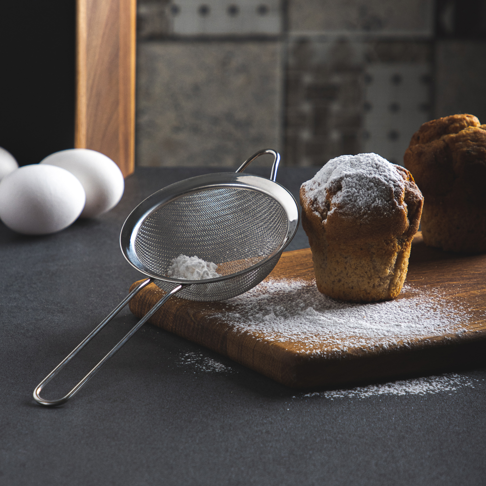 Сито из нержавеющей стали для фильтрации различных ингредиентов - от просеивания муки до процеживания чая от чаинок. Отлично выполняет свою функцию. Ситечко займет достойное место на вашей кухне.