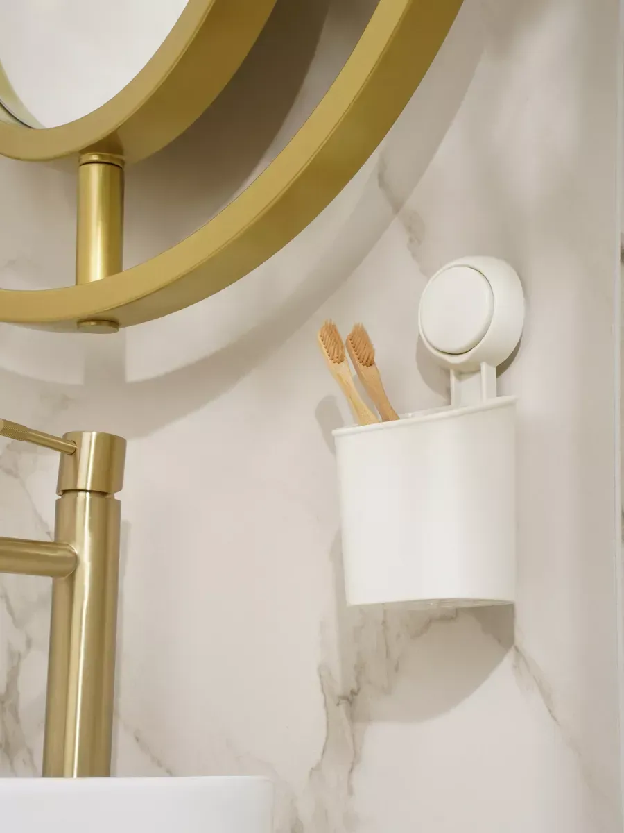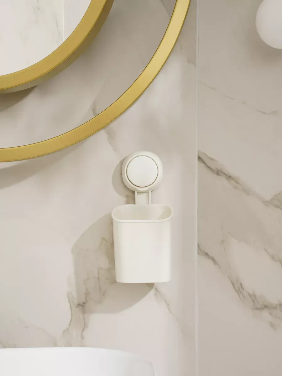 Поддерживайте чистоту и порядок в ванной комнате с помощью удобного и практичного стакана для зубных щеток на вакуумной присоске! Этот стильный белый стакан из прочного пластика надежно крепится к любой гладкой поверхности, экономя место и добавляя уюта вашей ванной.