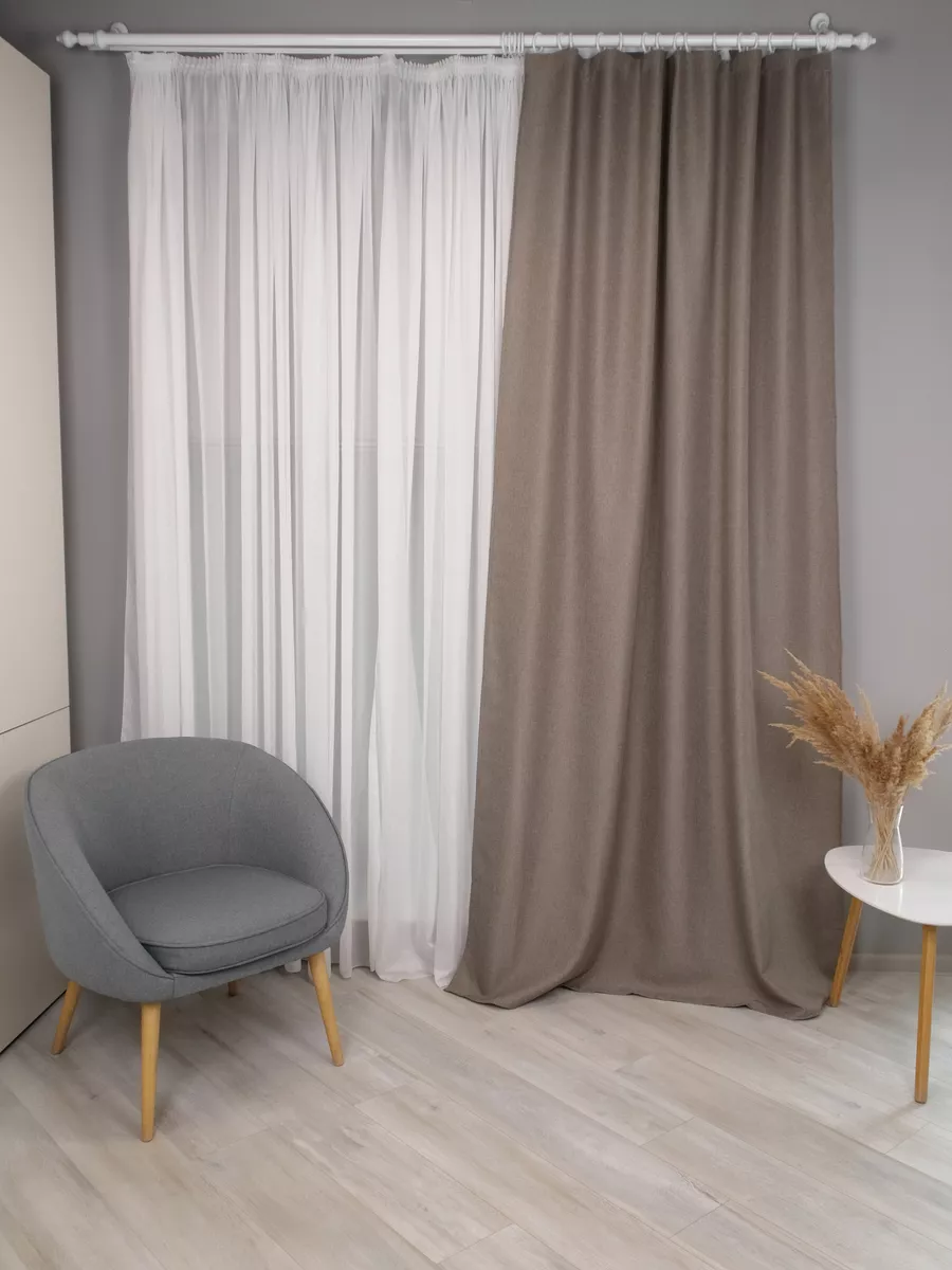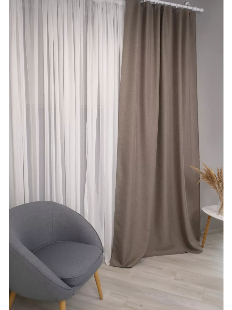 Ткань приятная на ощупь, имеет структуру рогожки, благородный блеск, добавляя в ваш дом, в гостиную, в спальню, в детскую изысканность и уют. Шторы послужат качественным украшением любого интерьера: от современного Лофта до уютного стиля Бохо. Ткань не требует особых средств для ухода, подлежит стирке при температуре не более 30 градусов, на бережном режиме без отжима. Шторы на шторной ленте, также есть возможность крепления на трубу. Цена указана за 1 шт.