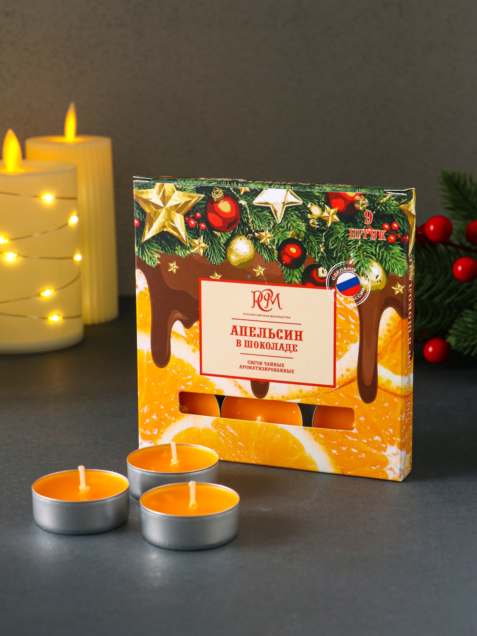 Свеча чайная 3,5ч, 9 шт., Апельсин в шоколаде