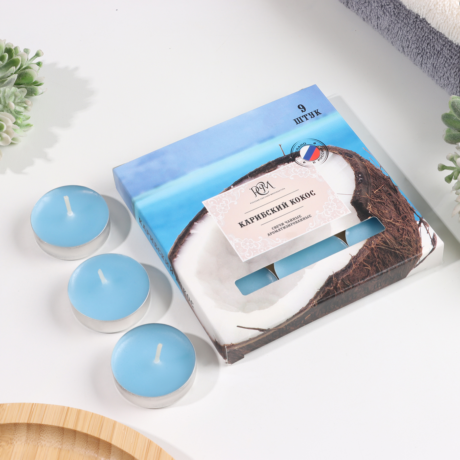 Свеча чайная 3,5ч, 9 шт., Карибский кокос