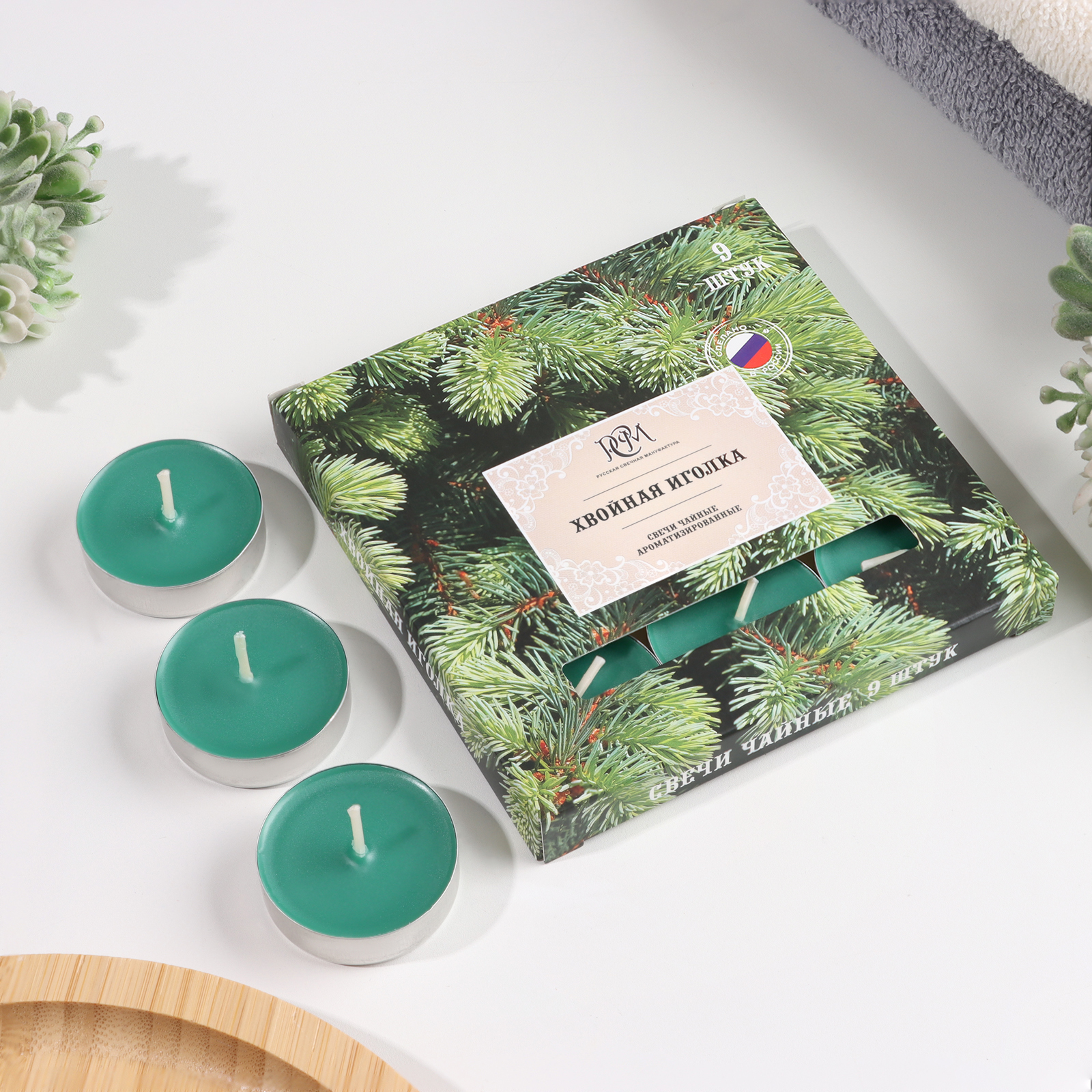 Свеча чайная 3,5ч, 9 шт., Хвойная иголка