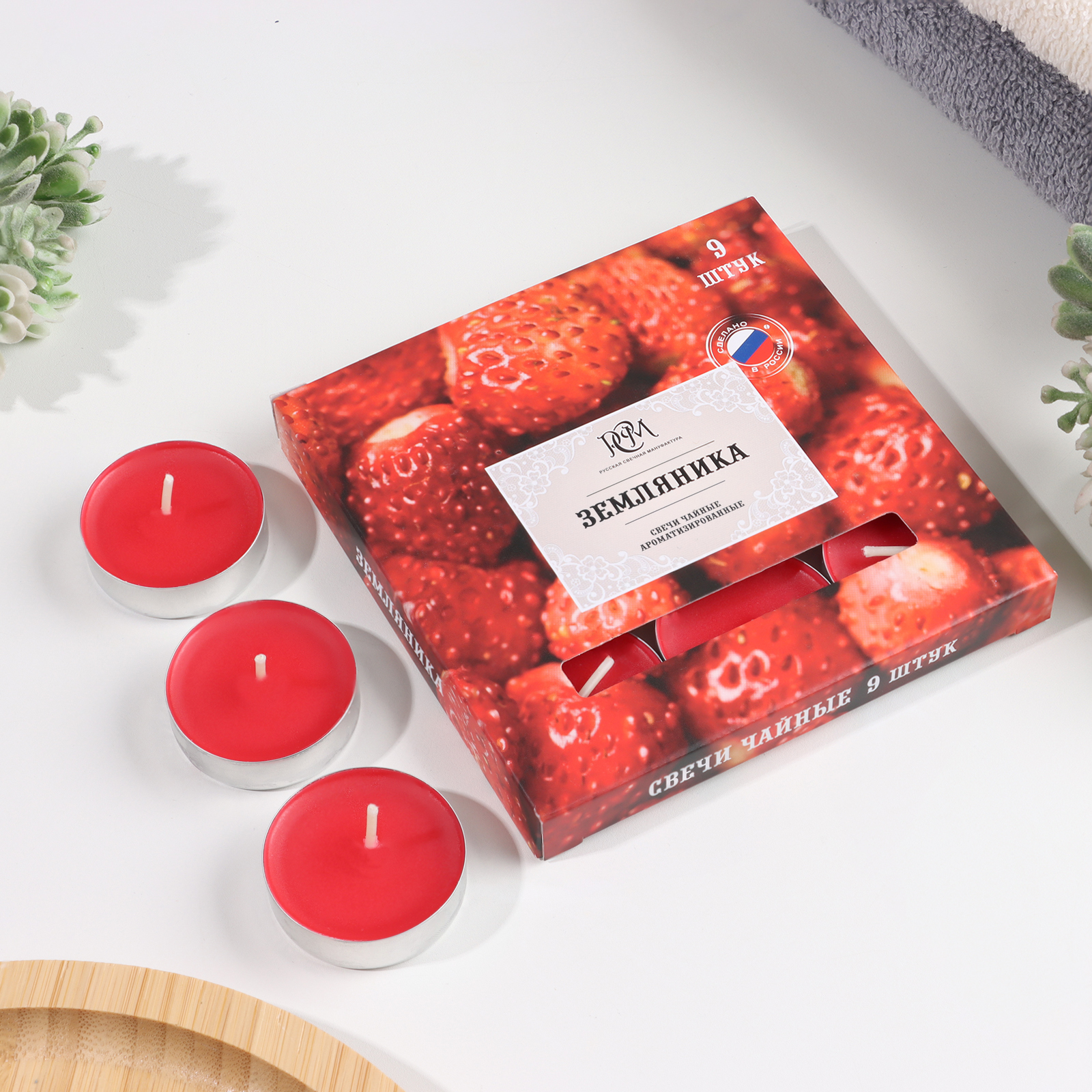 Свеча чайная 3,5ч, 9 шт., Земляника