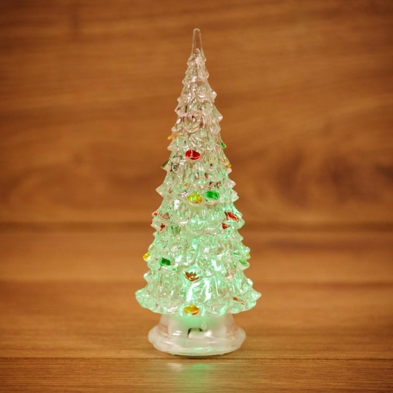 Светодиодная фигура «Елочка» высотой 12 см выполнена из ударопрочного прозрачного пластика. Внутри располагается светодиод, который непрерывно меняет цвета в хаотичном порядке, эффектно подсвечивая корпус. Изделие получает питание от 3 батареек типа AG13. Независимость от электрической розетки позволяет украсить фигурой любой уголок вашего дома.